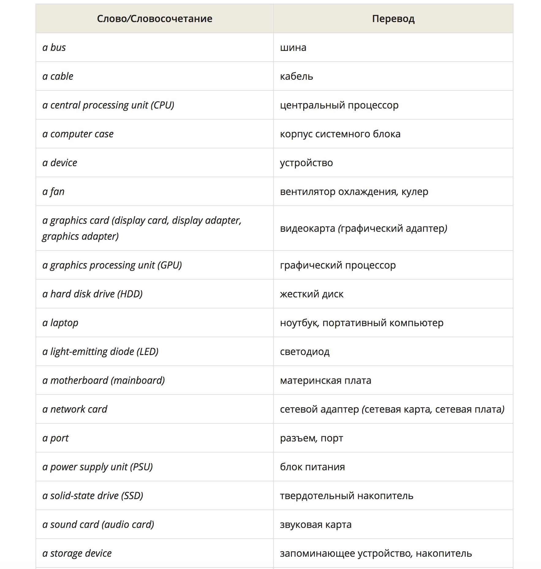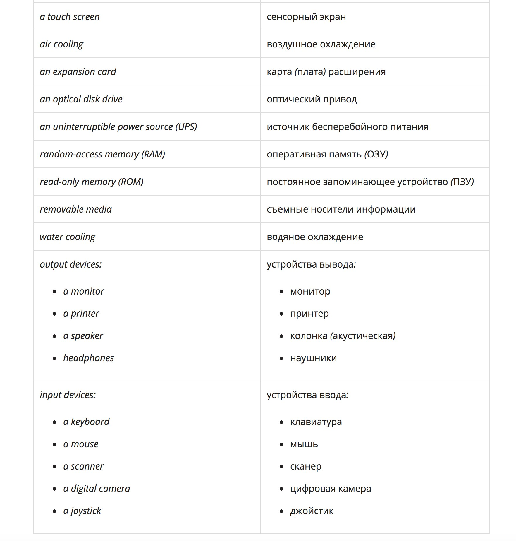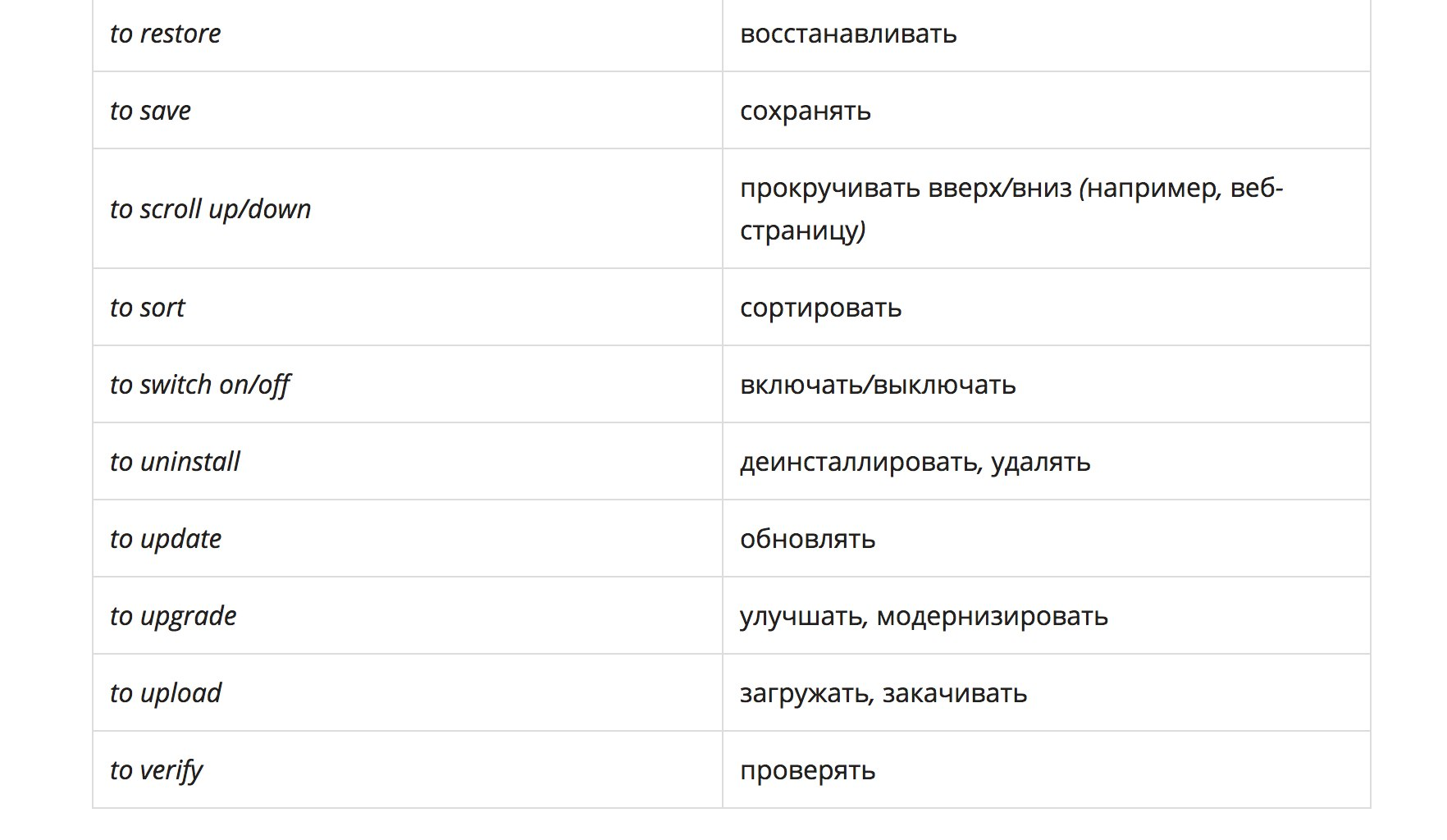 Базовый английский словарь для программистаПолезные глаголыHardware — аппаратное обеспечениеSoftware — программное обеспечениеInternet — Интернет