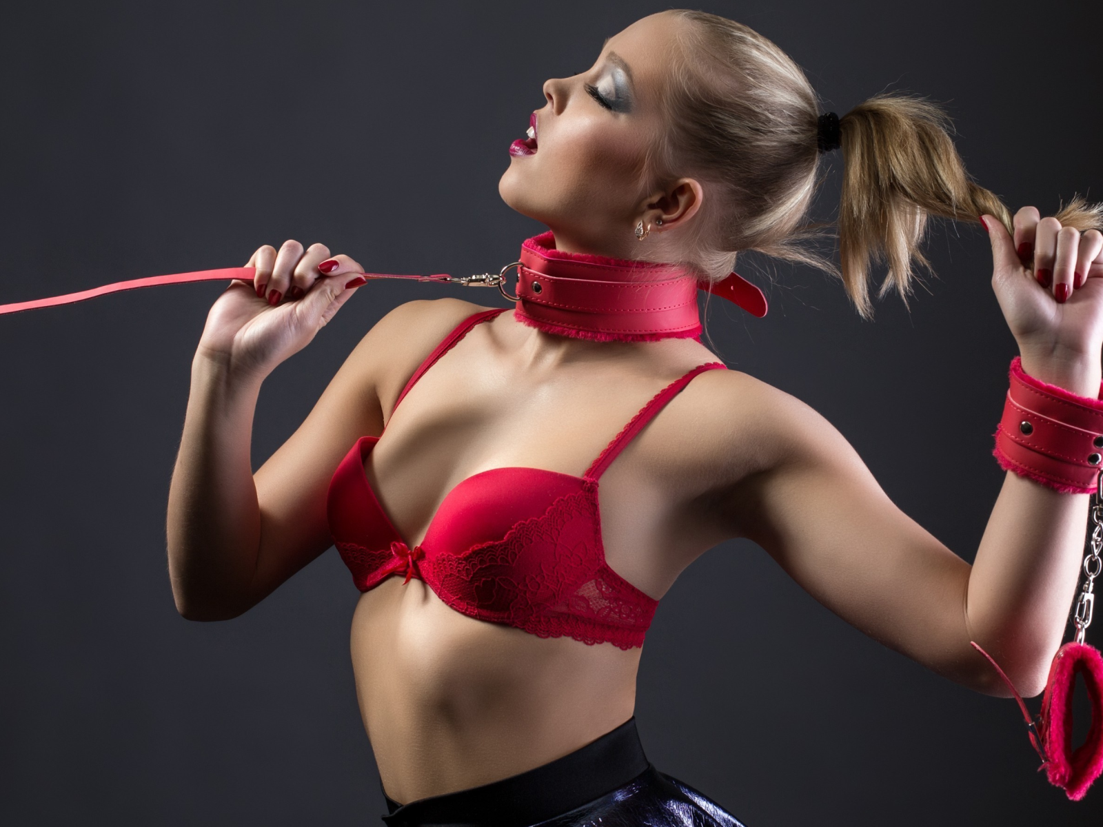 Cute submissive girl enjoys BDSM and lezdom with her girlfriend