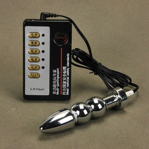 The top most ball of this bipolar dildo has an opposite polarity allowing deep penetrating electro-massage . It has a 2 .5 mm male plug . It can be used vaginally or anally . The electrosex dildo is 6 .5 inches long with a diameter of 1 inch .