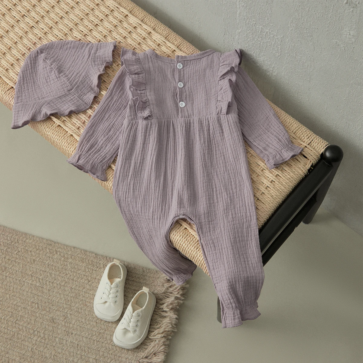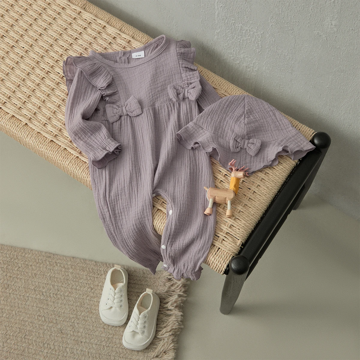 BeQeuewll Baby Girls Rompers Solid Color Ruffles Bowknot Crew Neck Infant Jumpsuits Fall Clothes Toddler Bodysuits with Hat - Купить с бесплатной доставкой