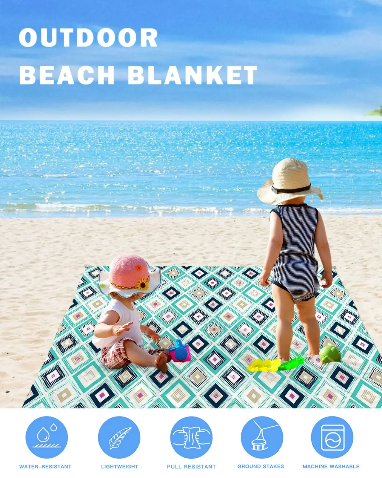 Beach Blanket,Diamonds Geometric Pattern Sandproof Waterproof Foldable Beach Blankets for Camping,Grass,Beach With Friend,Family - Купить с бесплатной доставкой