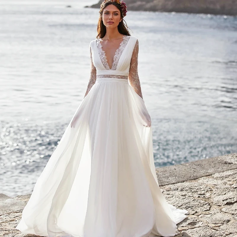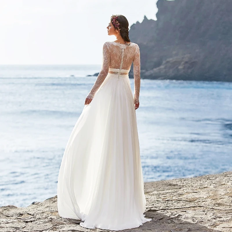 «Beach V-Neck Chiffon Wedding Dress For Bride 2022 Lace Long Sleeve A-Line Bridal Dress Illusion Backless Buttons Robe De Mariee» по лучшей цене на рынке! Всего за 124$ (11780рублей)