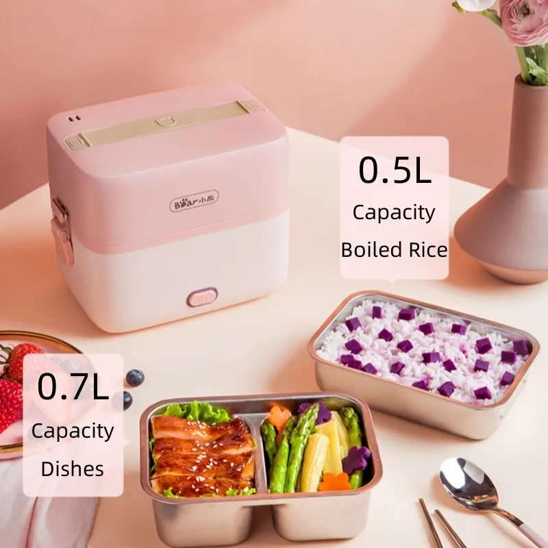 wuJNafAVHere you can buy Bear Double-layer Electric Heating Lunch Box Portable Small Bento Heat Food Quickly Steamed Rice Cooked Vegetables Working Meal with free delivery to your post office.