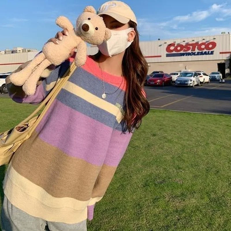 XIXGUOnqdДолго искали Bear Sweater Women Spring and Autumn Lazy Wind Loose Outer Wear Rainbow Sweater Striped Fashion Gentle Wind Top Ins, но не могли найти? Предоставляем вашему вниманию Bear Sweater Women Spring and Autumn Lazy Wind Loose Outer Wear Rainbow Sweater Striped Fashion Gentle Wind Top Ins по лучшей цене на рынке!