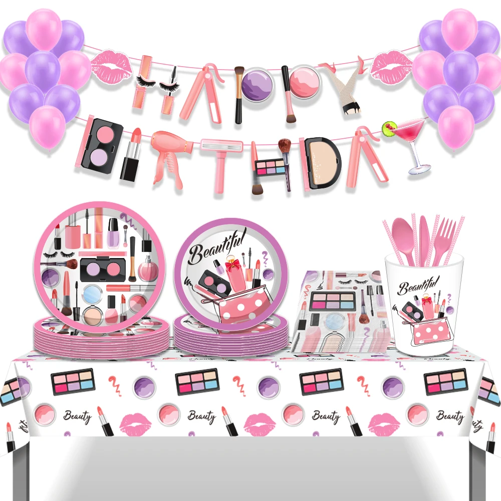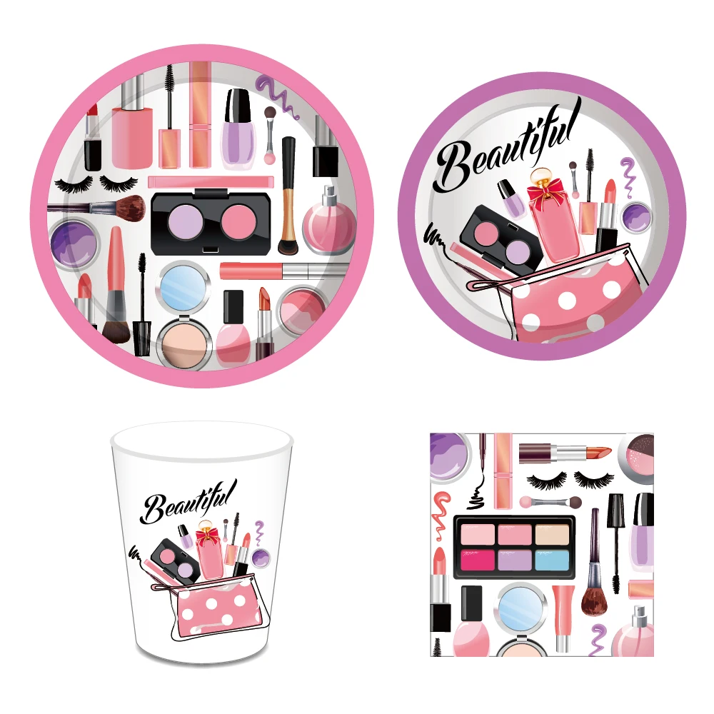 Beautiful Make-Up Spa Disposable Tableware Sets Girls Birthday Wedding Party Paper Plates Cups Napkins Dinnerware Backdrop Decor - Купить с бесплатной доставкой