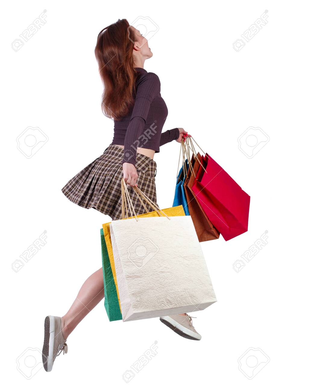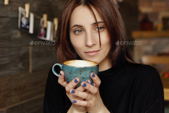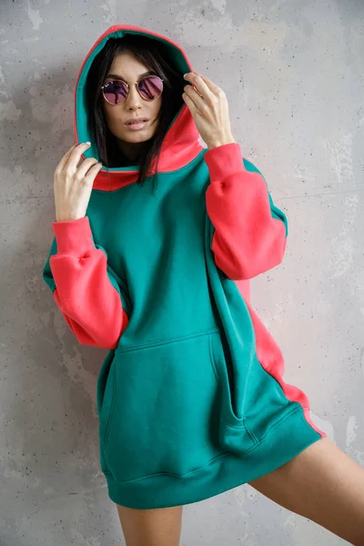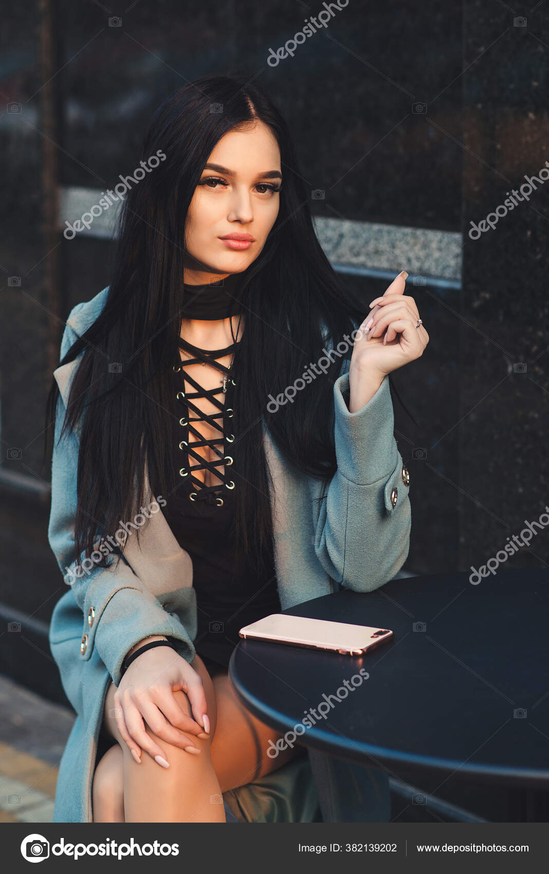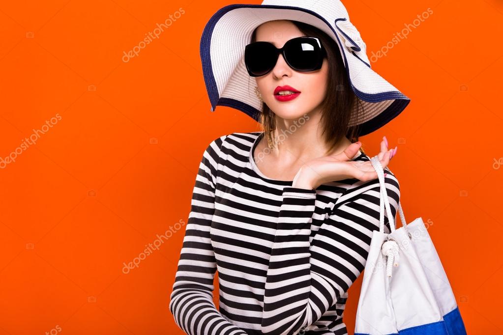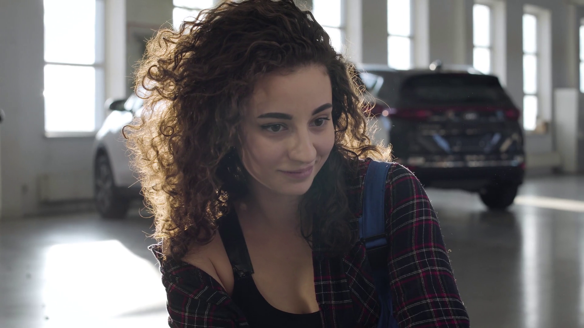 Beautiful brunette babe is posing in a shop