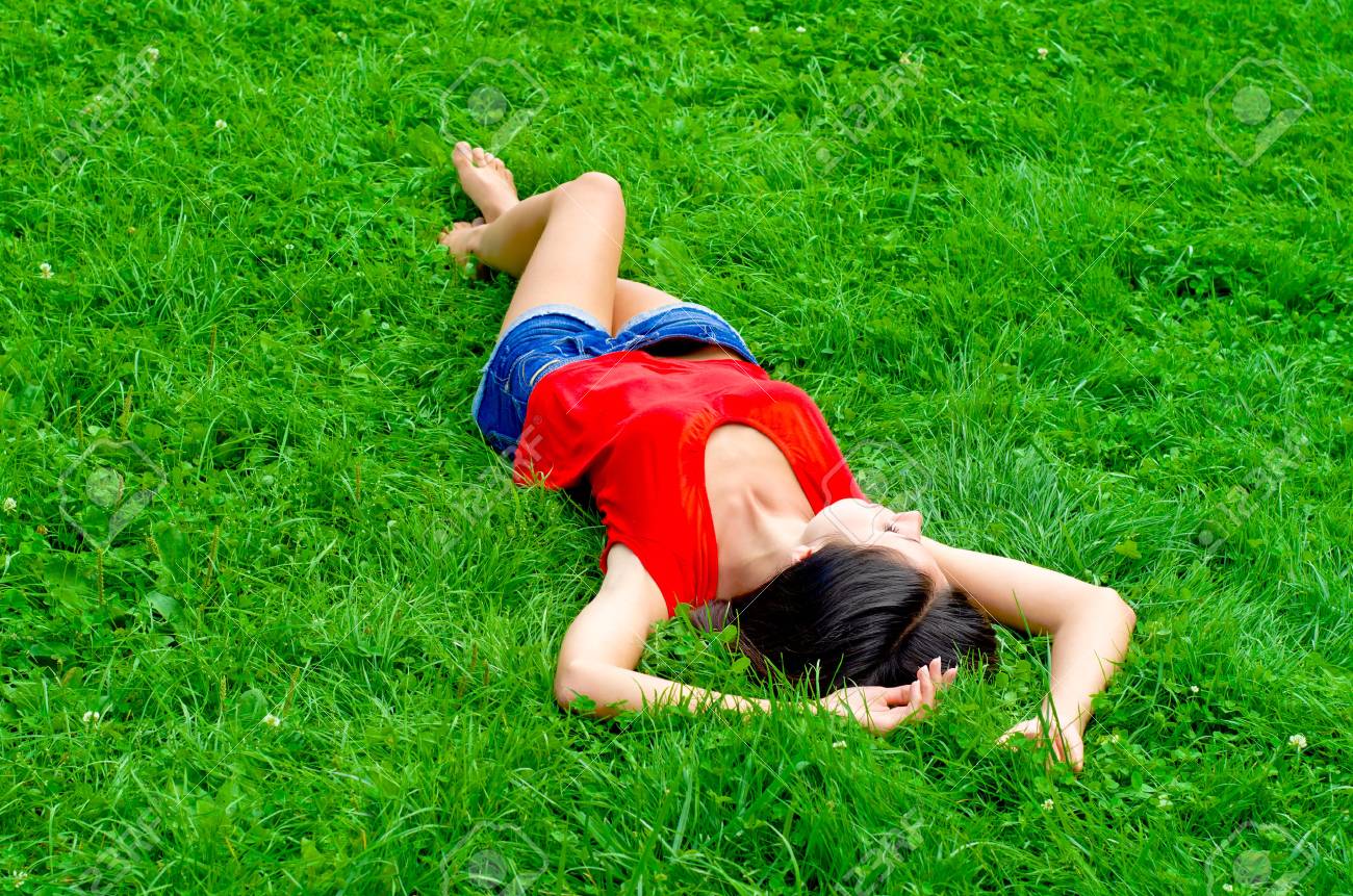 Beautiful girl with hips pressed grass
