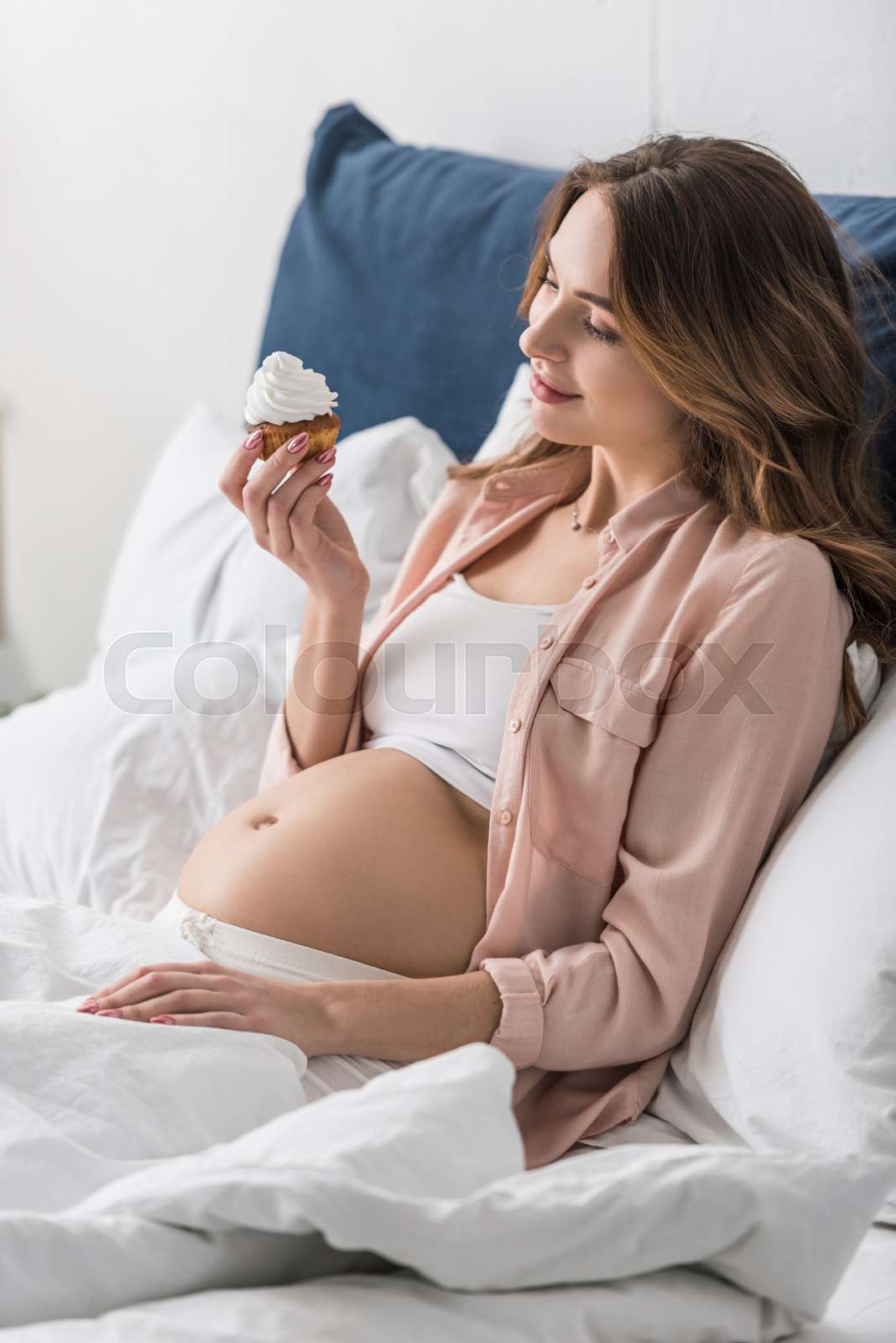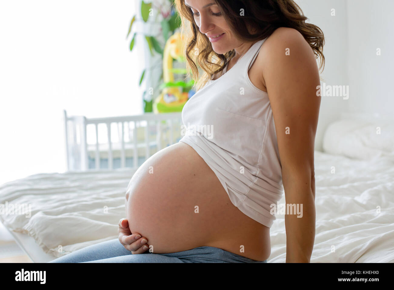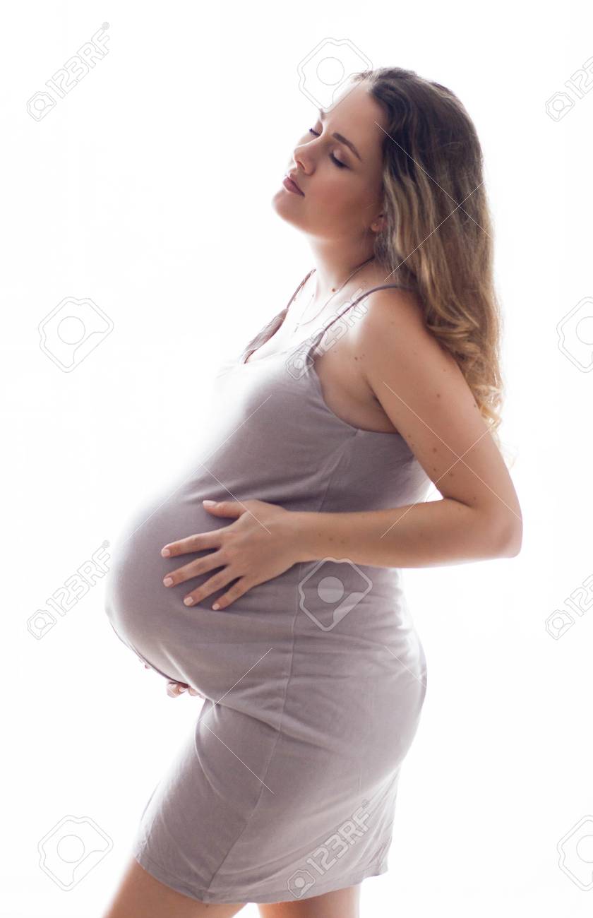 Beautiful pregnant girl getting