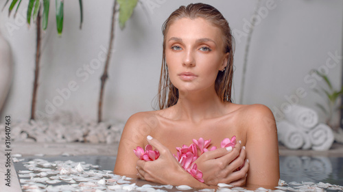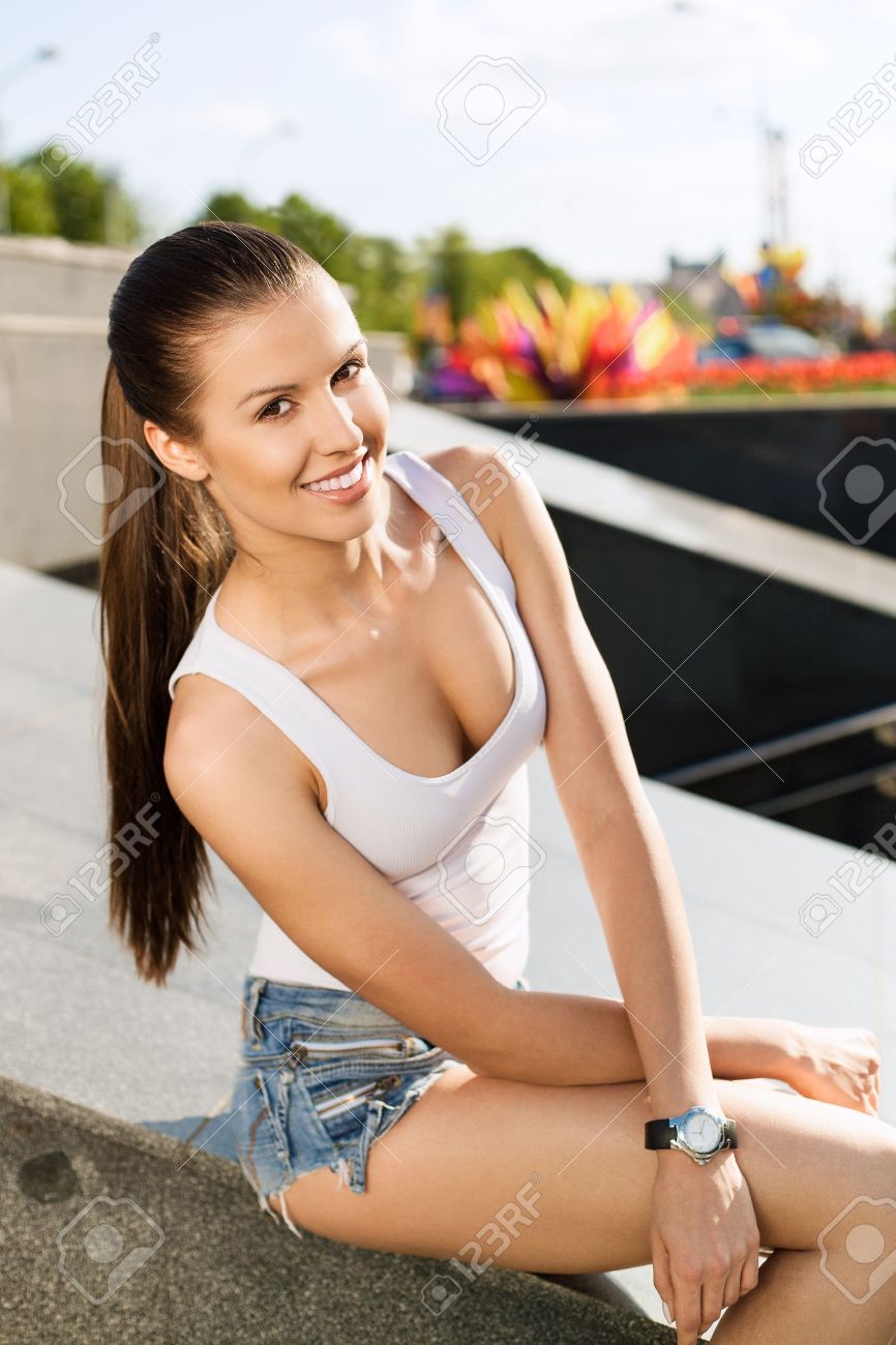Beautiful young babe enjoys