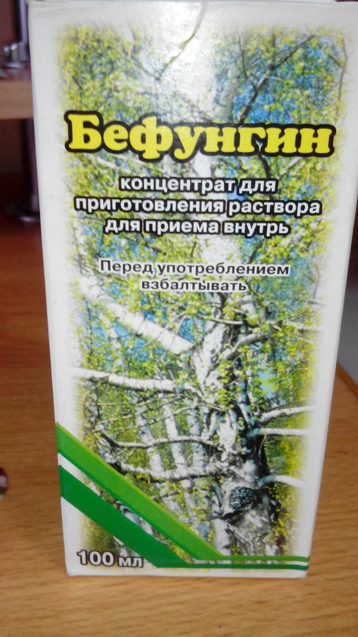 БЕФУНГИН ФЛ . МЛ-УП ., СОСТАВ: ПОЛУГУСТОЙ ЭКСТРАКТ, ПОЛУЧАЕМЫЙ ИЗ НАРОСТОВ БЕРЕЗОВОГО ГРИБА; ПРИ ЗАБОЛЕВАНИЯХ ЖЕЛУДОЧНО-КИШЕЧНОГО ТРАКТА; ДЕПО-МЕДРОЛ СУСП . ДЛЯ В/М ВВЕД . МГМЛ ФЛ .