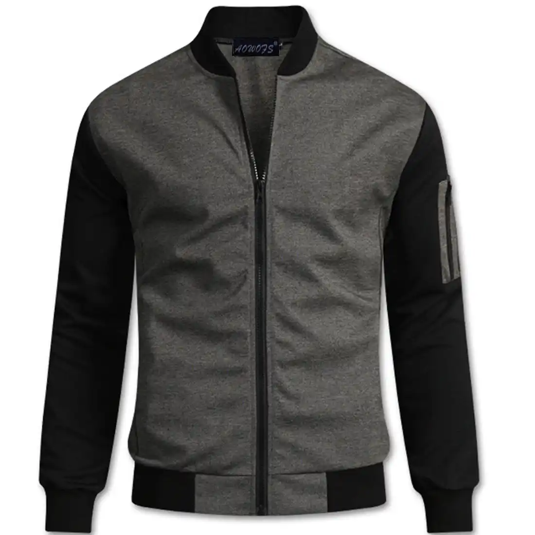 Куртка Бомбер С Кожаными Рукавами Мужская