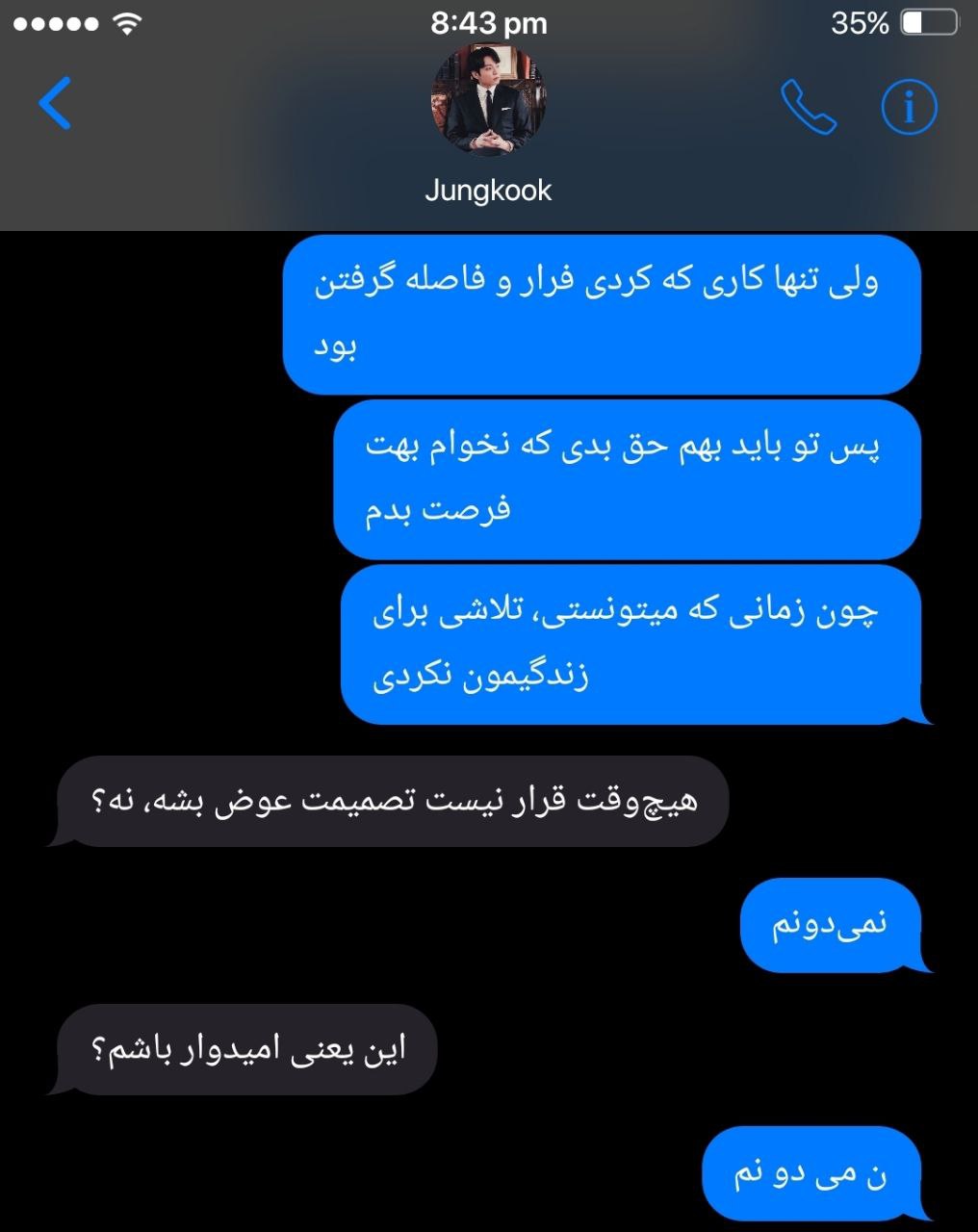 تهیونگ میون نفسهای بریدهاش کلماتی که حتی درصدی از درد دلش رو بیان نمیکردن لب زد، اما لحنش بیش از خشم، پر از غم بود. هر کلمهاش مثل تکهی شیشهای شکسته از قلبش روی زمین میافتاد.