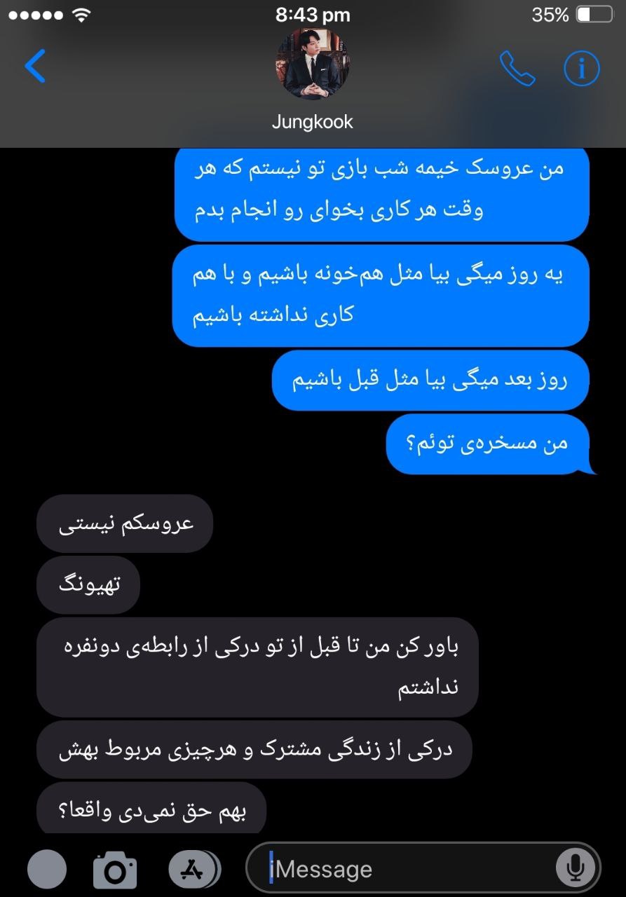 خودش از تهیونگ خواسته بود که بهش نگاه کنه، اما حالا داشت زیر اون نگاه خیره ذوب میشد! انگار قلبش قصد داشت سینهاش رو از شدت تپشهای زیاد پاره کنه و جونگکوک مطمئن بود که تهیونگ صدای ضربان قلبش رو میشنوه.