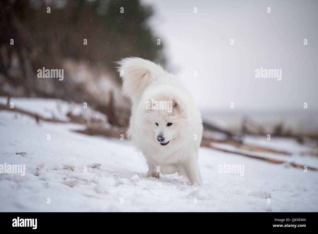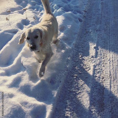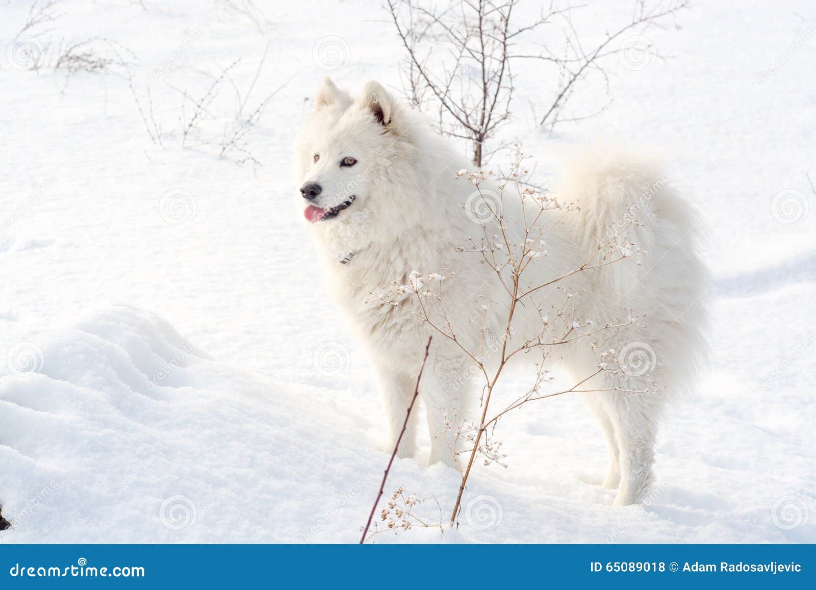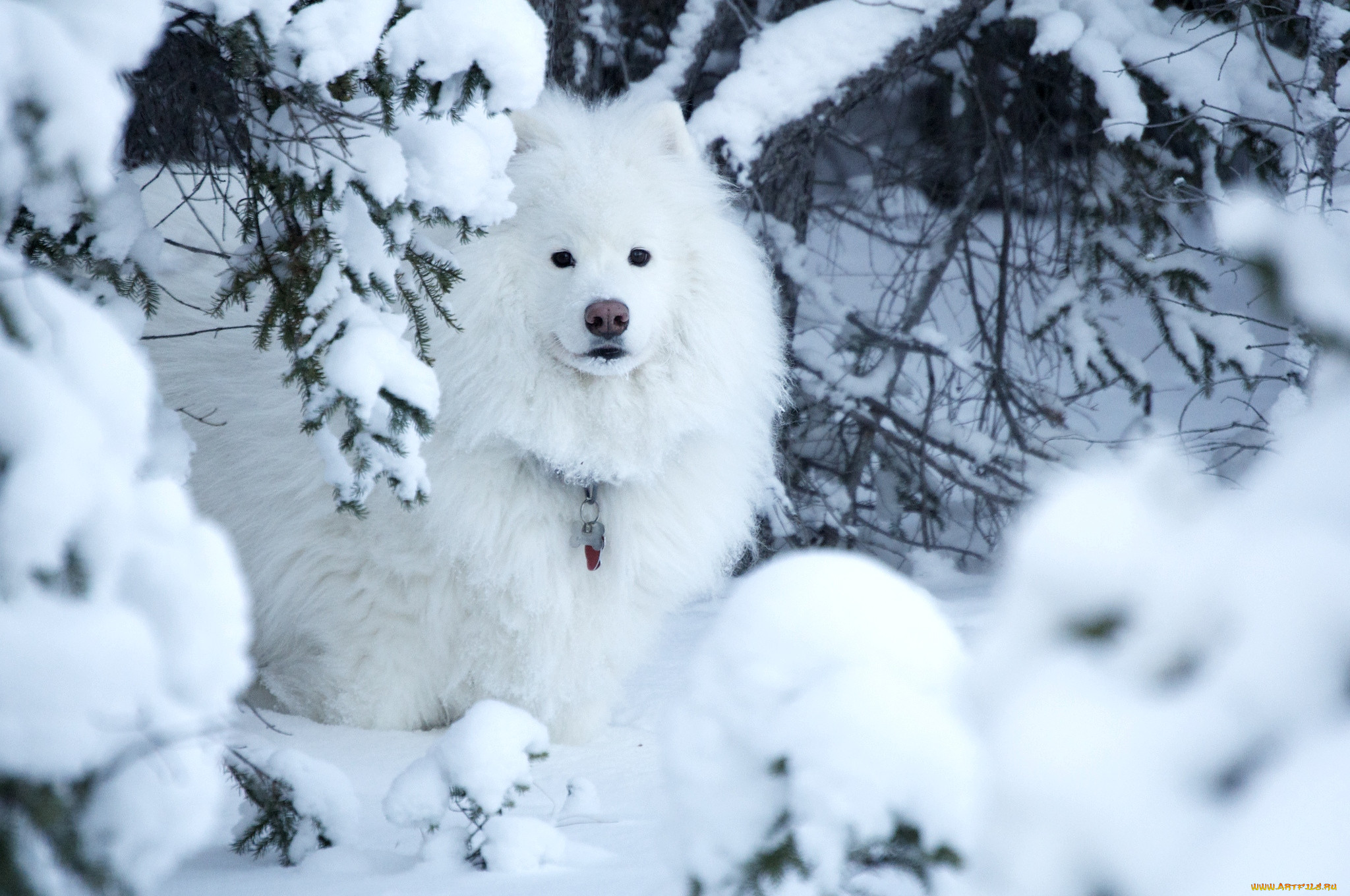Белая собака в снегу