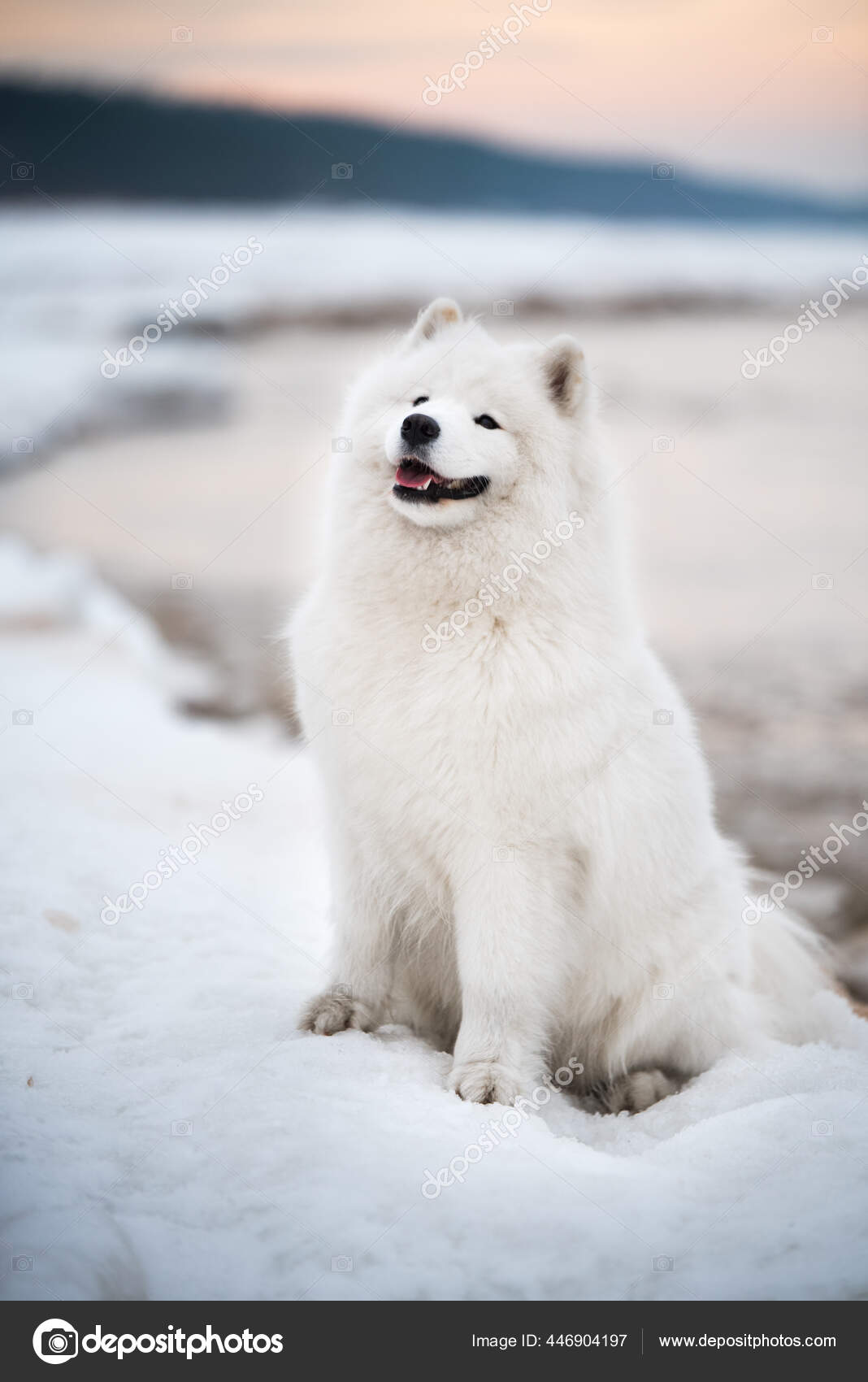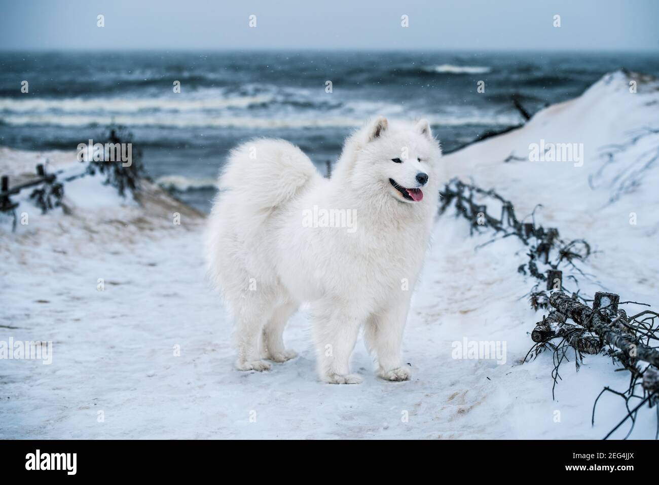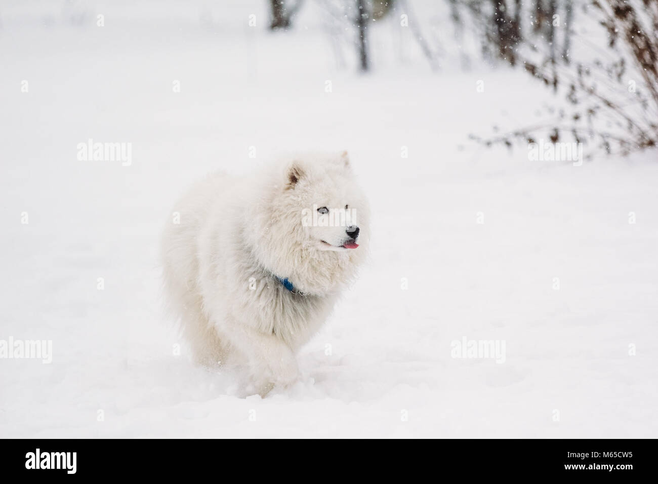 Белая собака в снегу