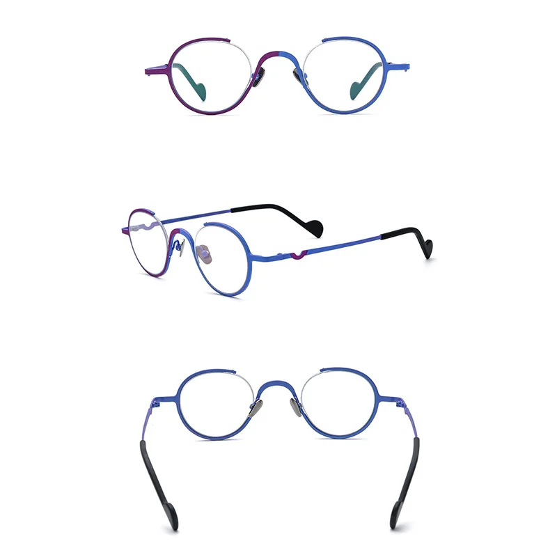 Belight Optical Titanium Combine Color Three-fourths Round Shape Eyewear Unique Design Spectacle Frame Women Eyeglasses 185745 - Купить с бесплатной доставкой