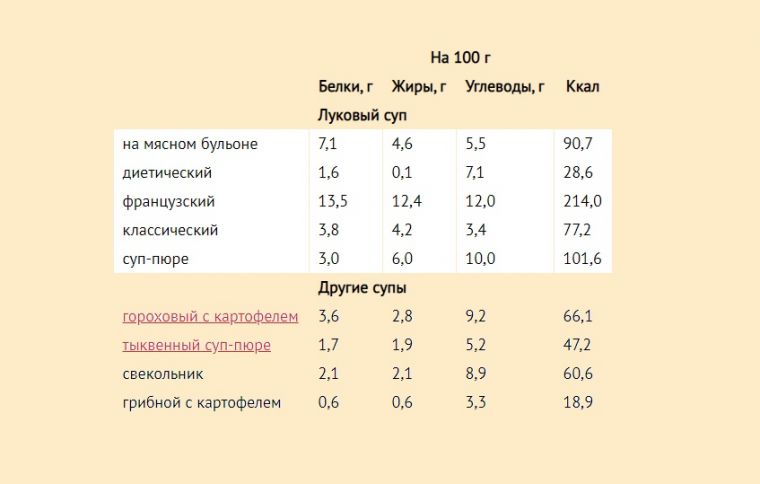 Белки жиры углеводы супа