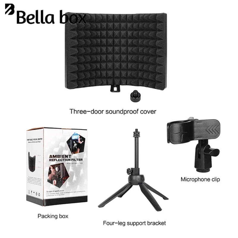 EnVOhpOfЗдесь вы сможете купить Bella Microphone Studio Small Sound Insulation Cover Microphone Windproof Screen Sound Absorption Cover Anti Noise Three Doors с бесплатной доставкой до вашего почтового отделения.