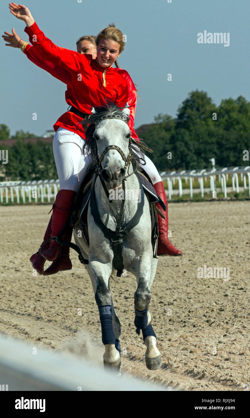Bella adolescente española cabalgando