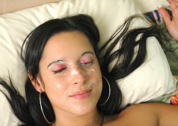 Belle brune couverte de sperme