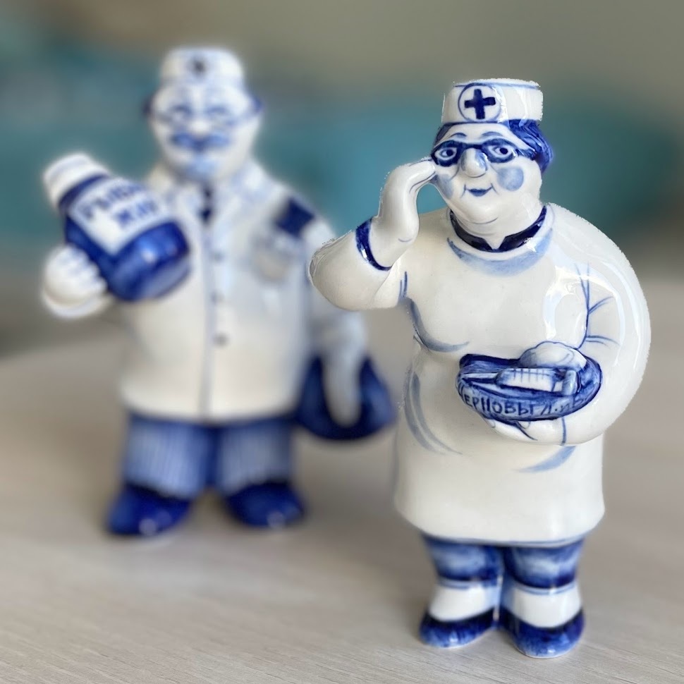 Бело синие фигурки