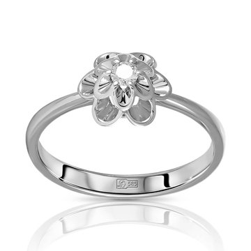 Кольцо «Бриллианты Якутии» с 5 бриллиантами, 0 .14 карат, цвет 4, чистота 6, тип огранки А; Белое золото 585 пробы Бриллианты Якутии