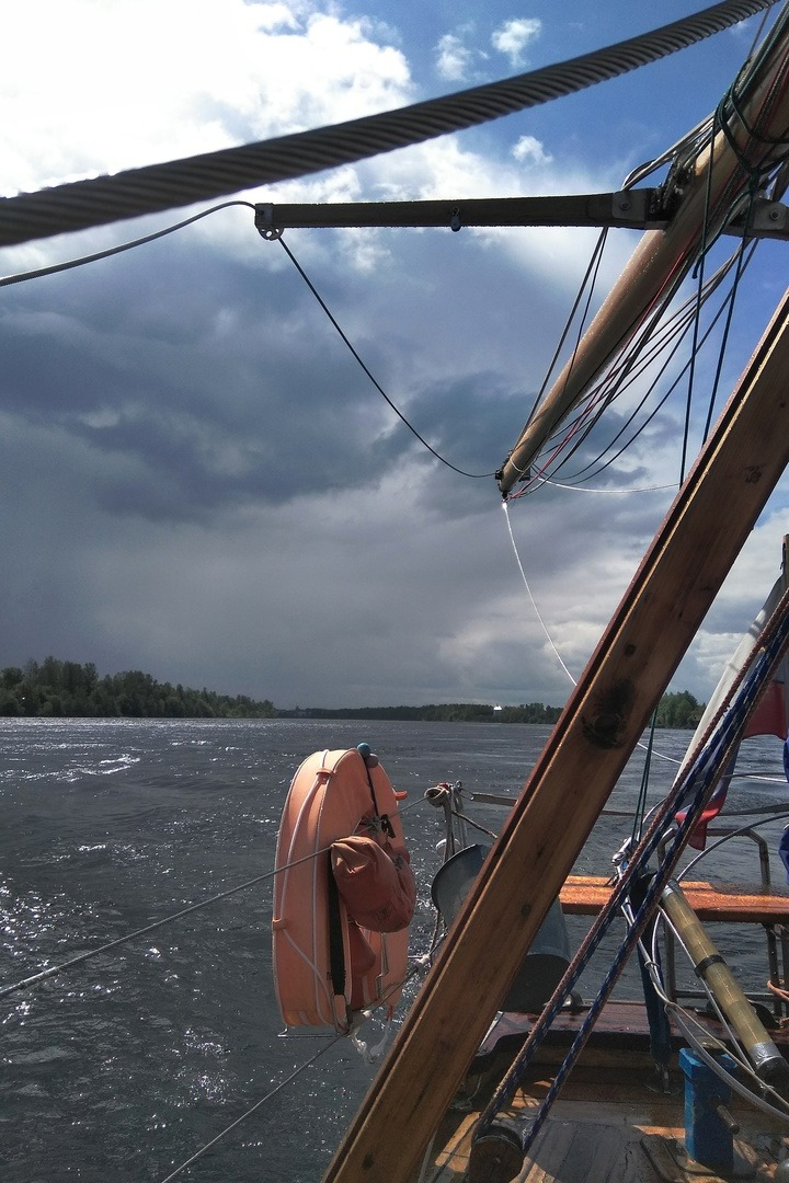По Неве дошли без приключений, слегка дождливо, течение на траверзе мыса Святки (самое узкое место реки) все такое же резвое, буйки все также сопротивляются. Гармония и постоянство - в действии)) Наша скорость некоторое время не превышала 1,4 узла, но Кондор доблестно одолел этот небольшой участок пути и во второй половине дня мы пришвартовались в Шлиссельбурге, на территории катерной стоянки.