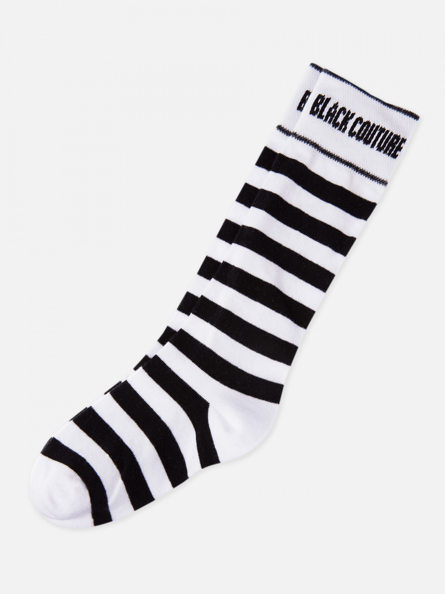 Черно-белые трикотажные гольфы с кантом на манжетах и орнаментом из логотипа бренда . Состав: 75% хлопок, 22% полиамид, 3% эластан