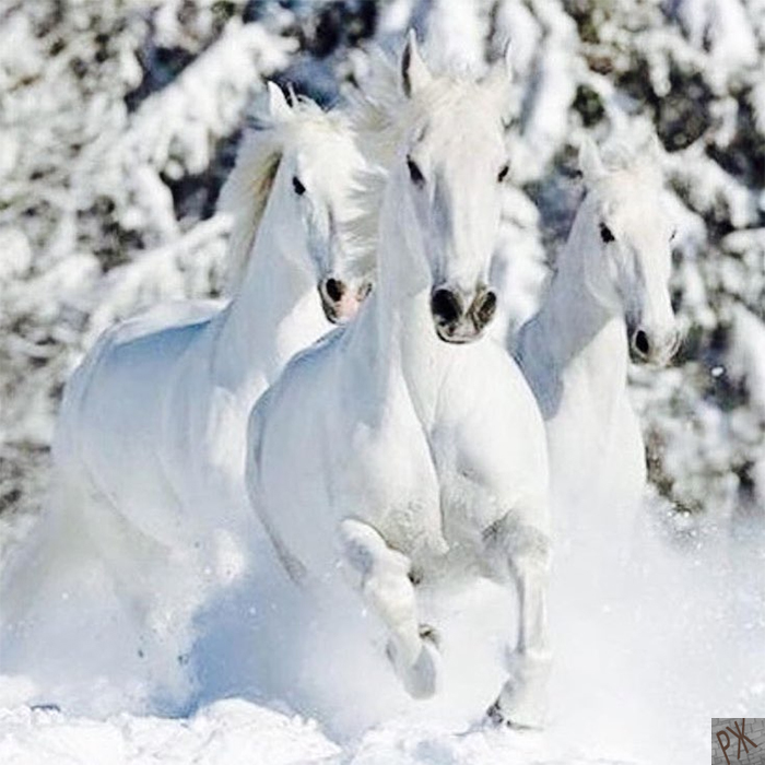 Белые кони зимой