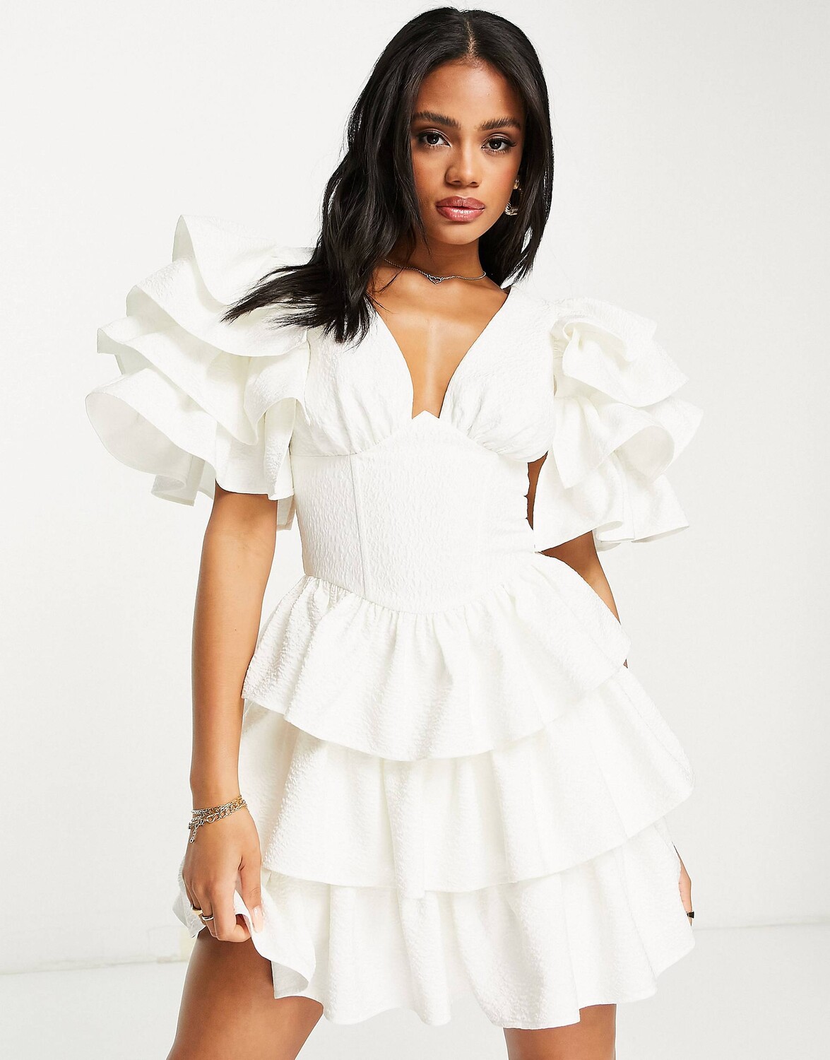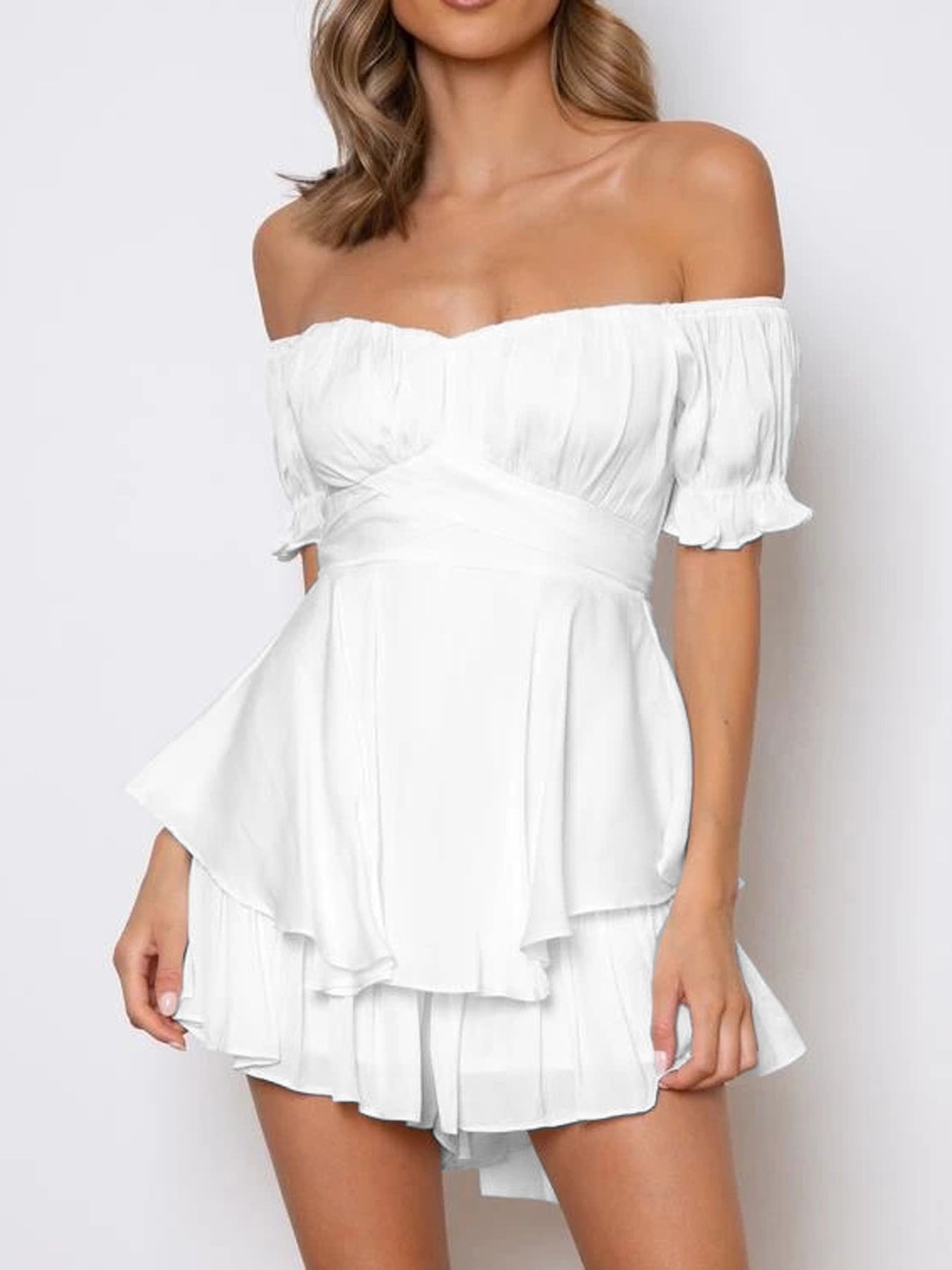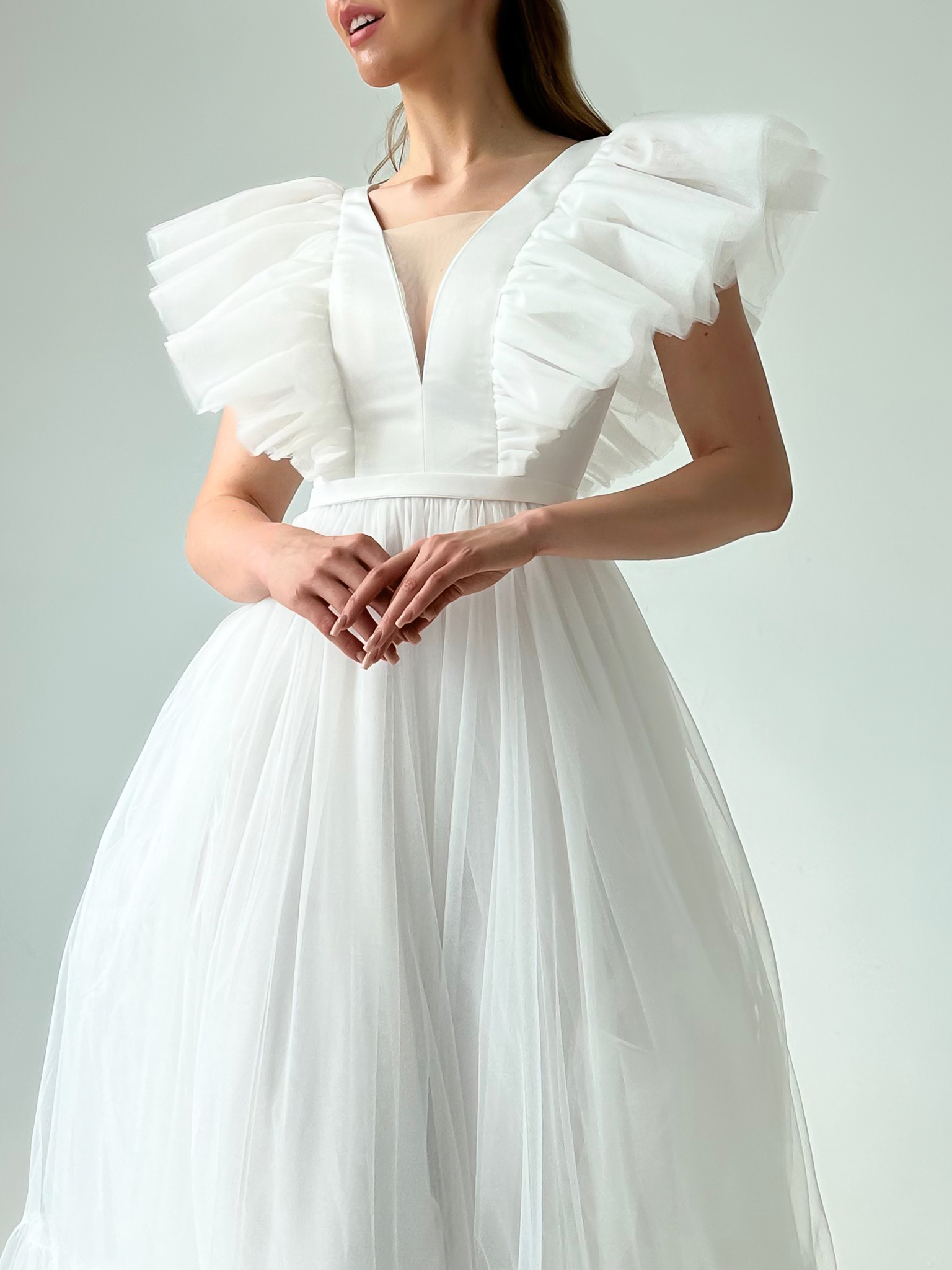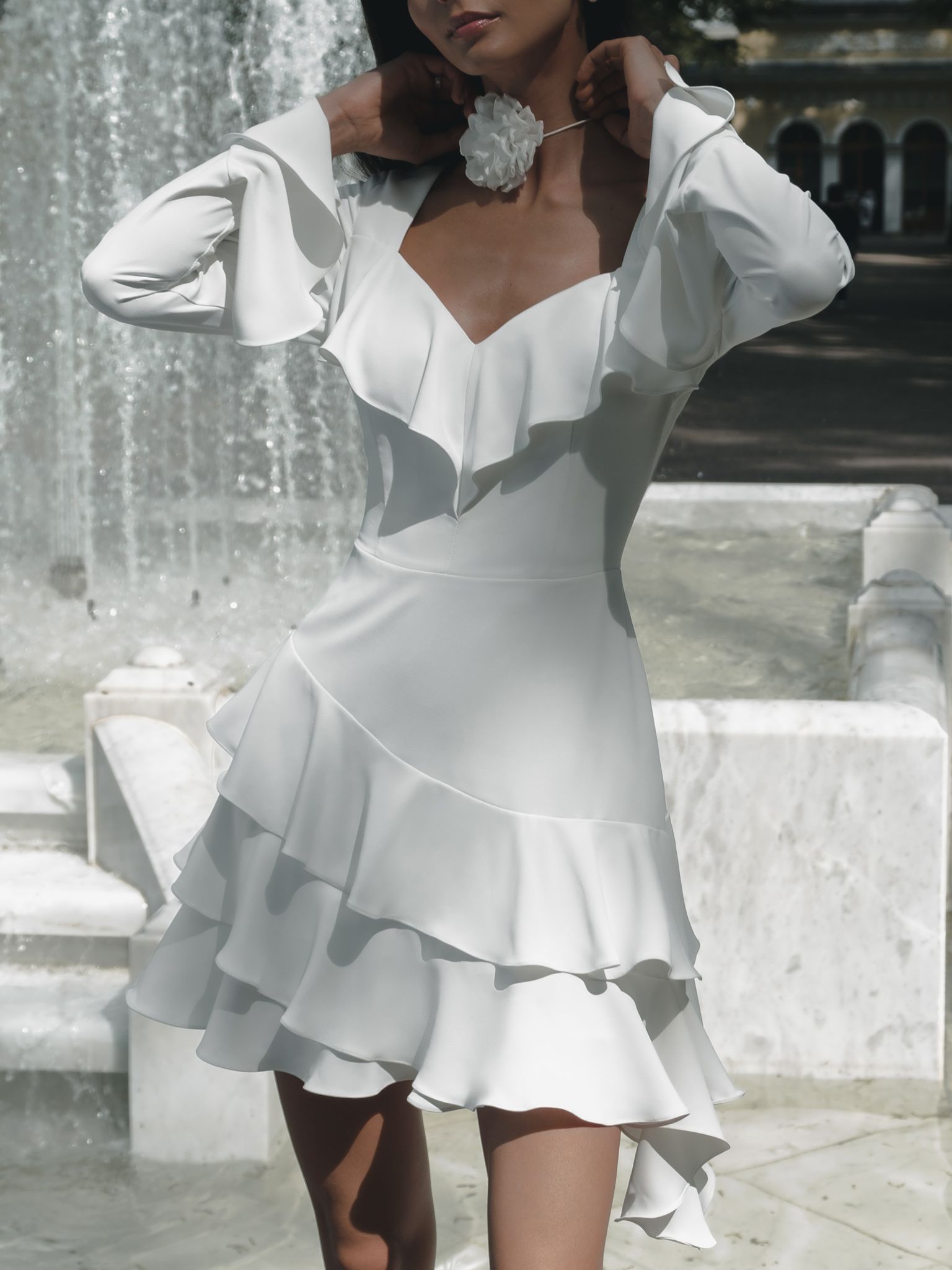 Белые платья оборками 108 фото