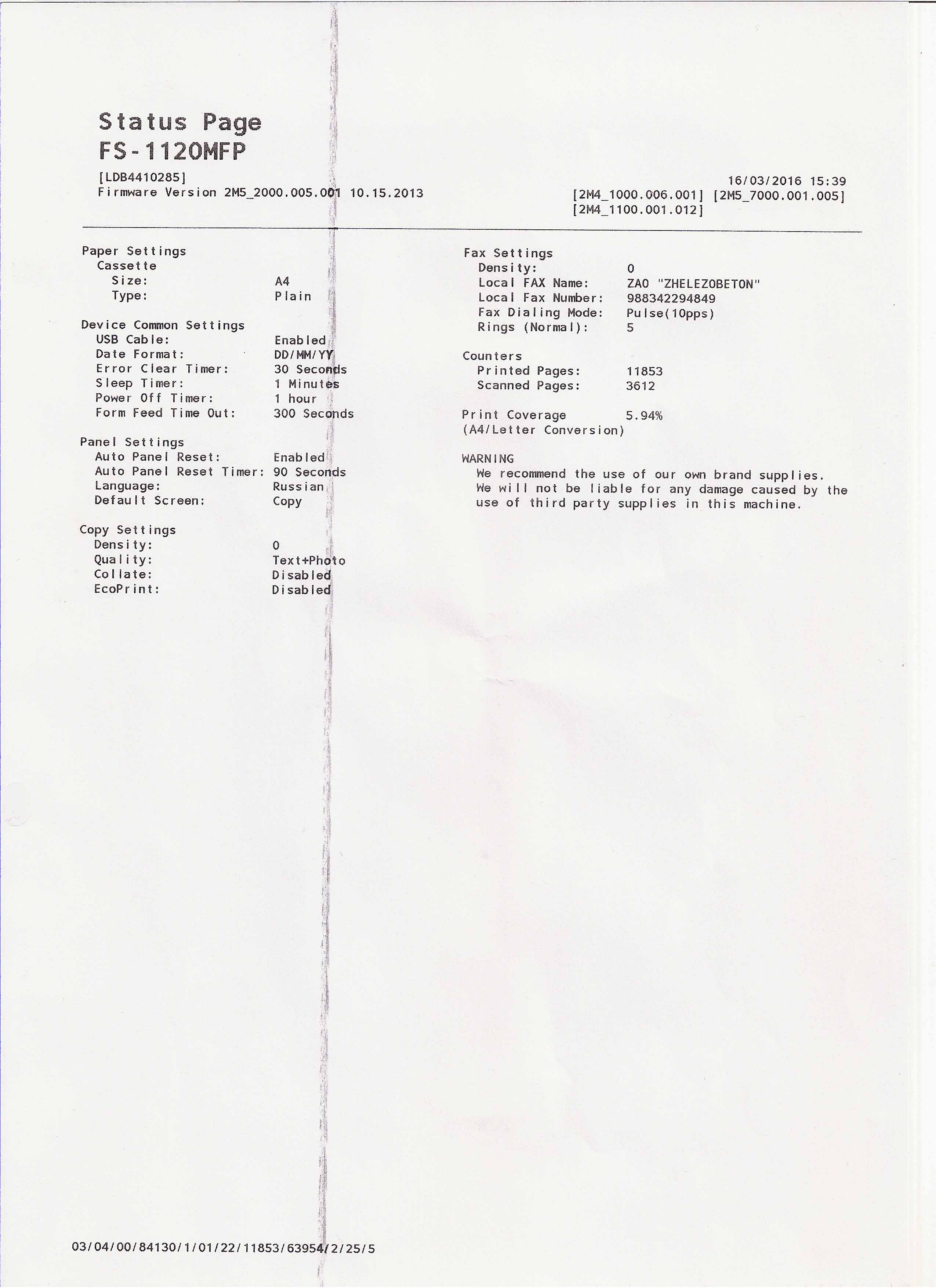 Белые полосы kyocera