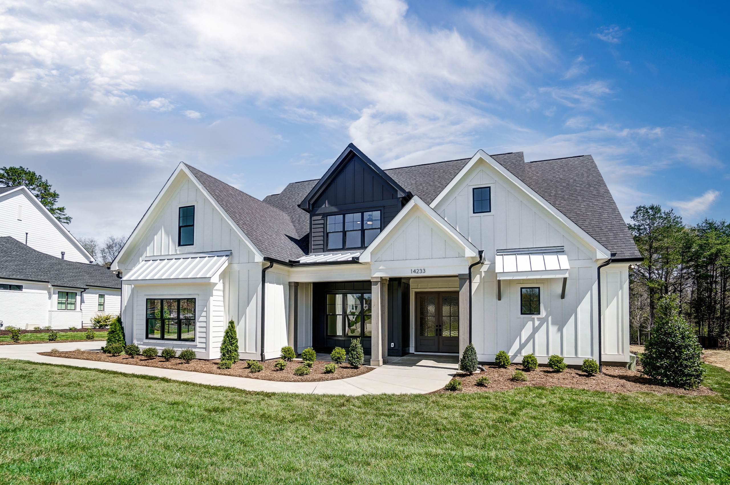 2 . Белый дом с темно-серой крышей для альтернативного классического вида ; 3 .Светло-серый дом со светло-серой крышей для красивого традиционного ощущения ; 4 .