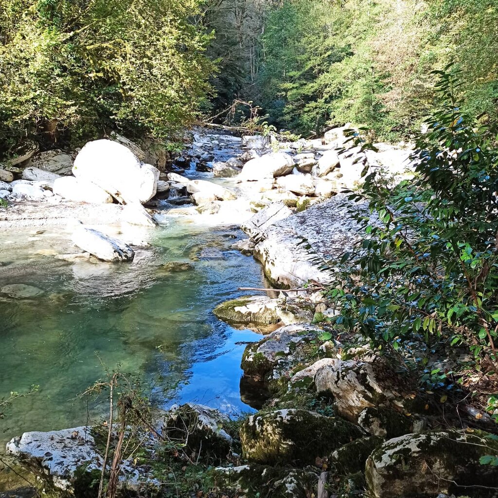 Каньон реки Хоста не требует альпинистского снаряжения . Его можно сравнить с уникальным аквапарком природного происхождения в котором сочетаются удивительная голубая вода, белый камень . . .