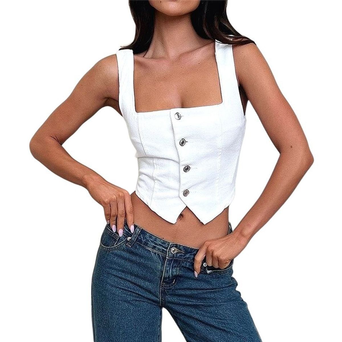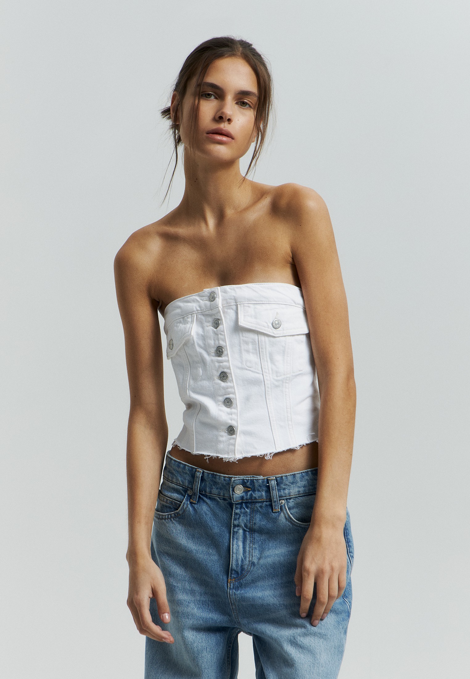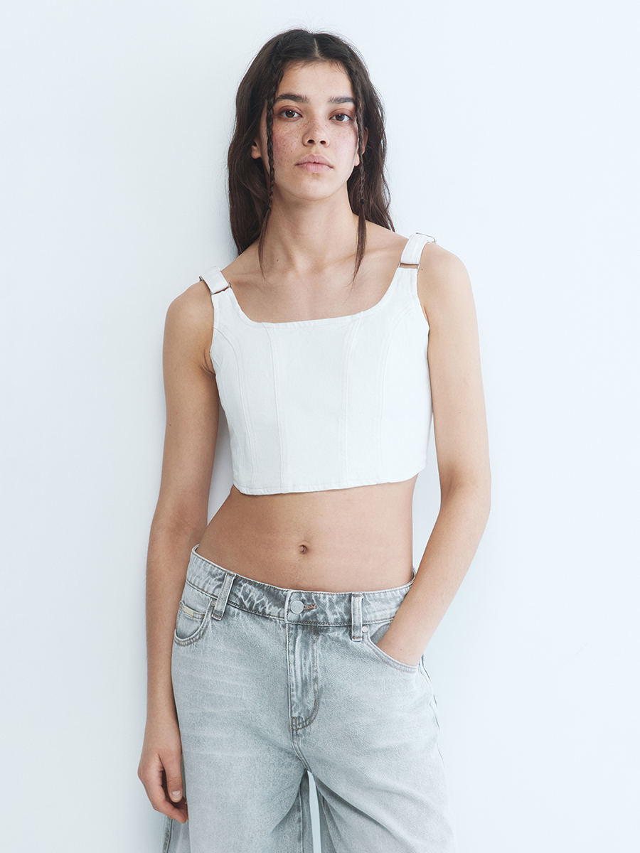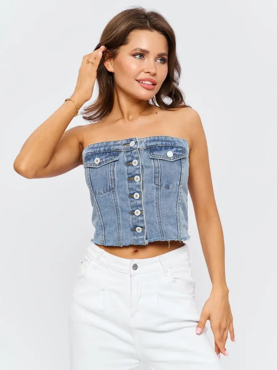 Белый джинсовый топ 81 фотографий