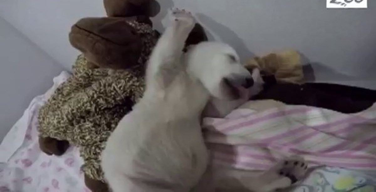 Белый медвежонок во сне