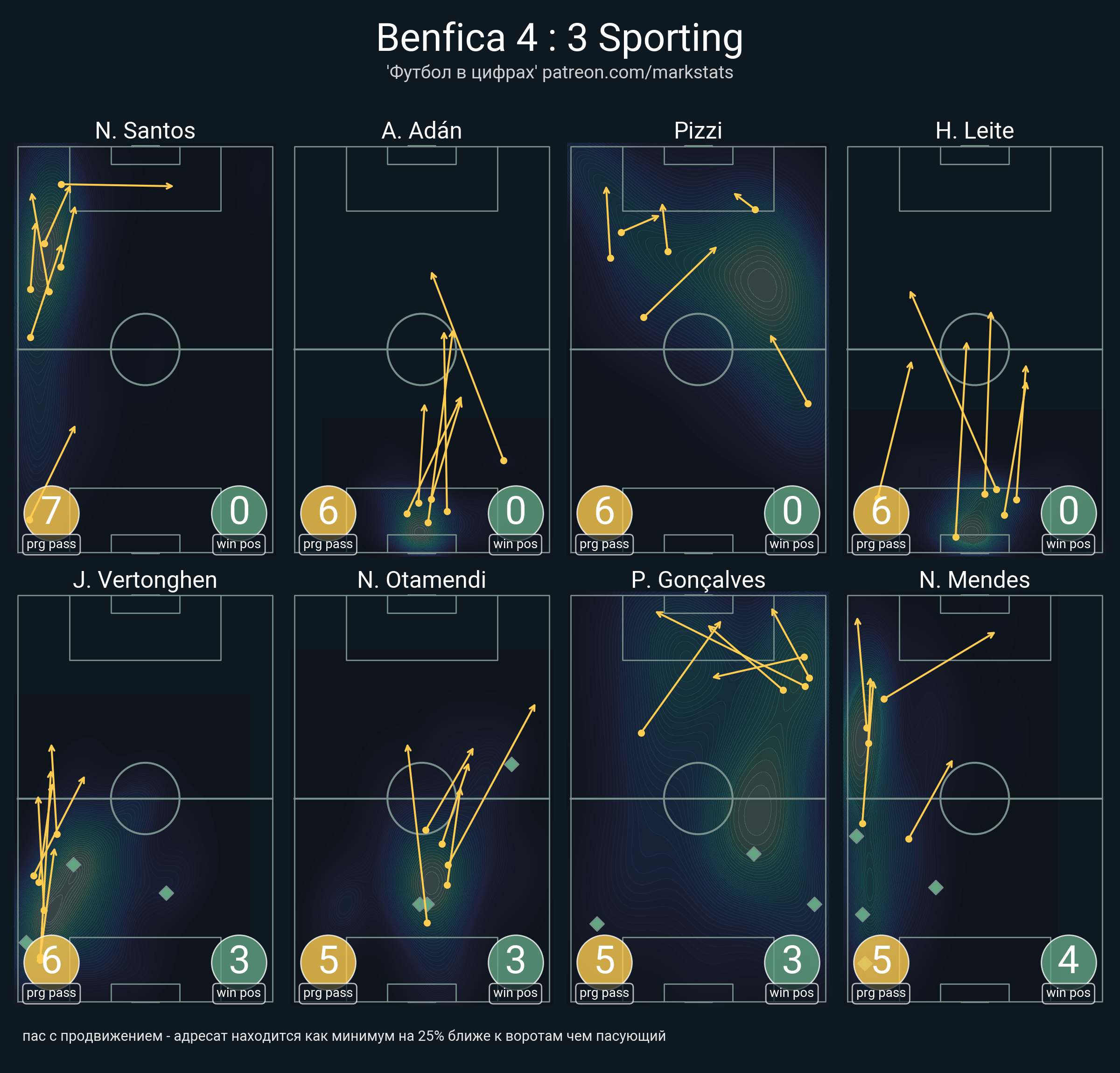 ▪ 19 успешных передач из 26 попыток (5 с продвижением, 5 на трети соперника)