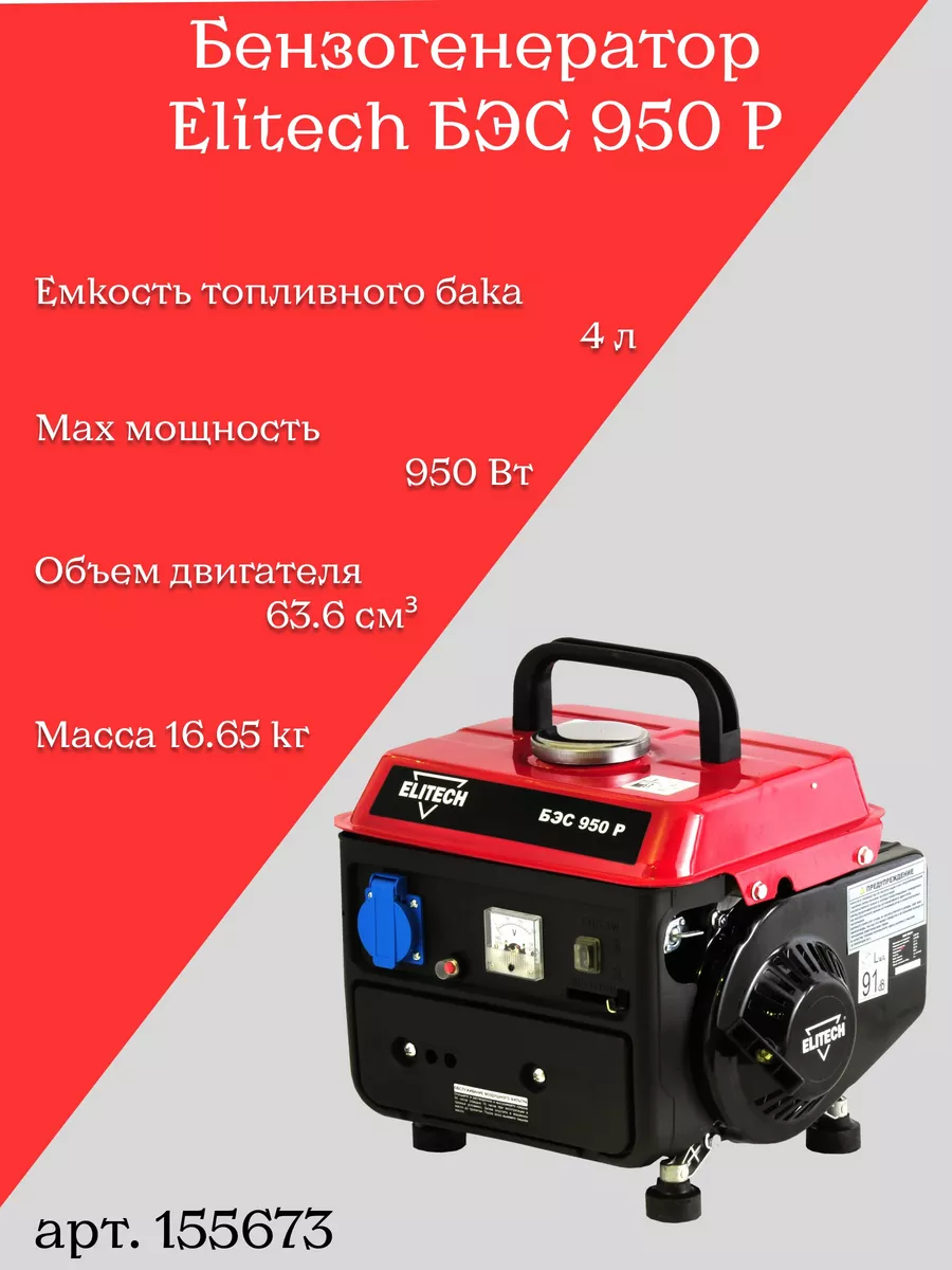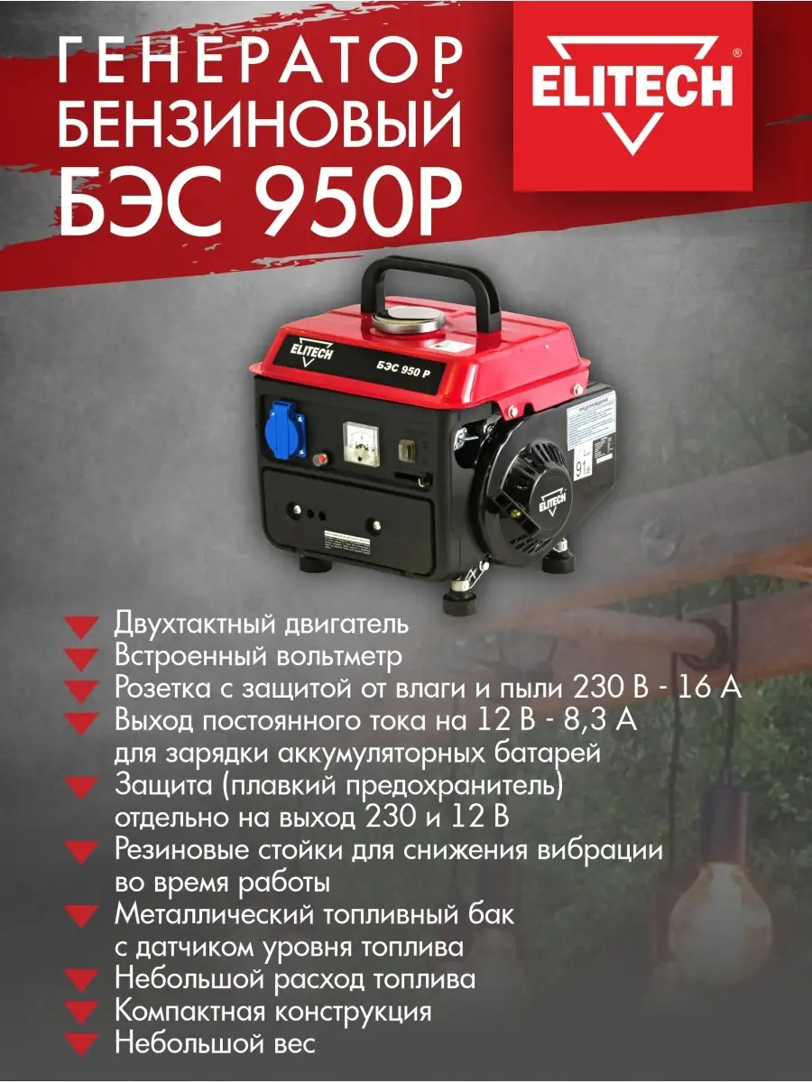 Бензиновый генератор elitech бэс 950 р
