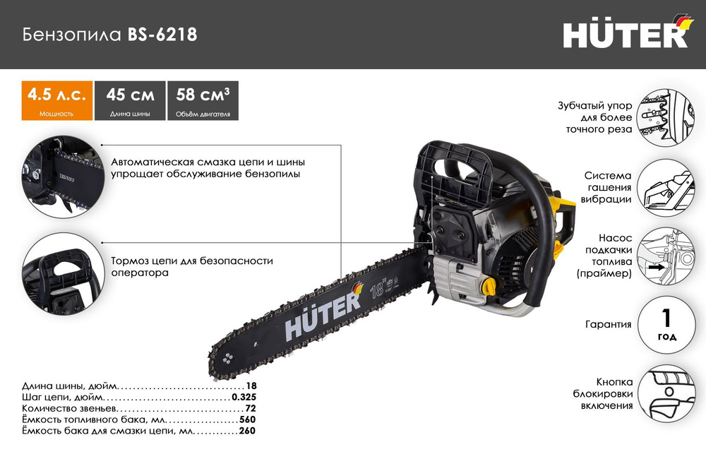 Бензопила bs 6218 huter 101 фотографий