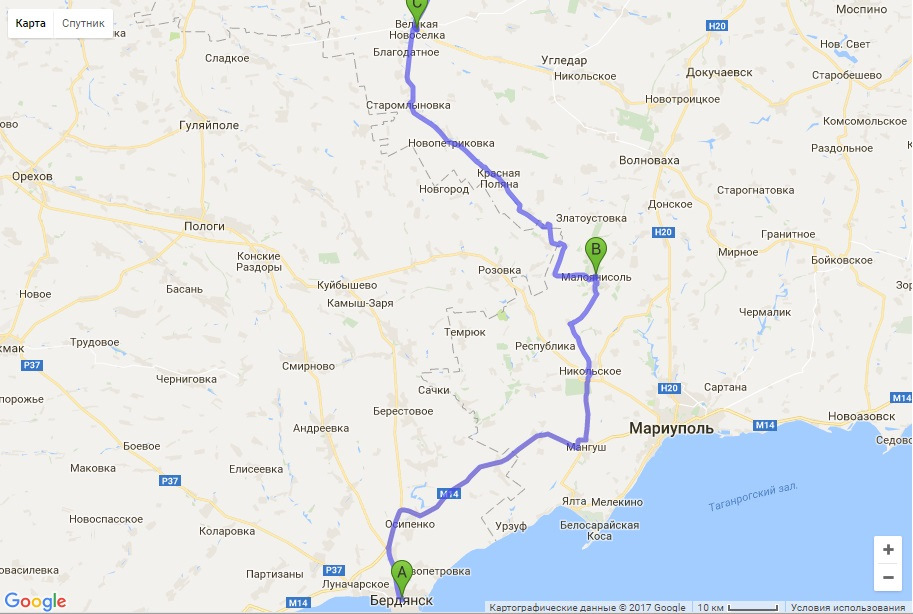 Бердянск мариуполь км