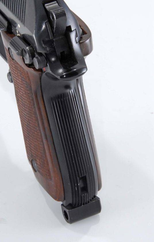 Щечки рукоятки выпускались в четырех вариантах: пластмассовая черная, пластмассовая коричневая, деревянная из красного дерева и деревянная из корня ореха.
