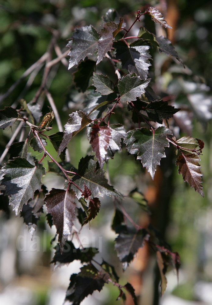 Берёза повислая отдел . . . Форма листа — обычная . Побеги имеют чёрно-пурпурный оттенок, сохраняют его всё лето; кора не такая белая, как у основного вида .