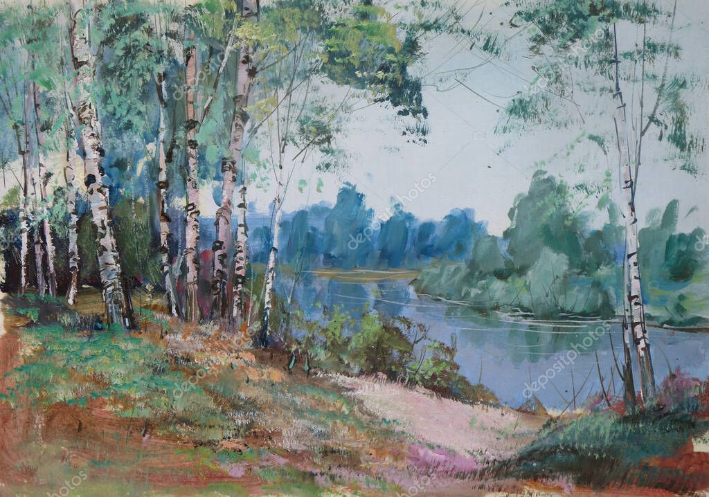 Пейзаж с березами картинки, стоковые фото . . . | Depositphotos