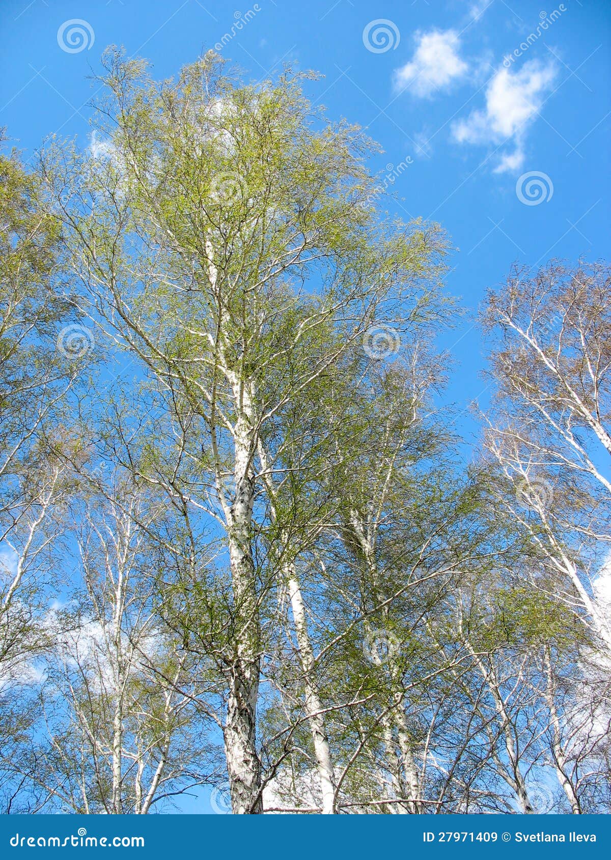 Березы под голубым небом