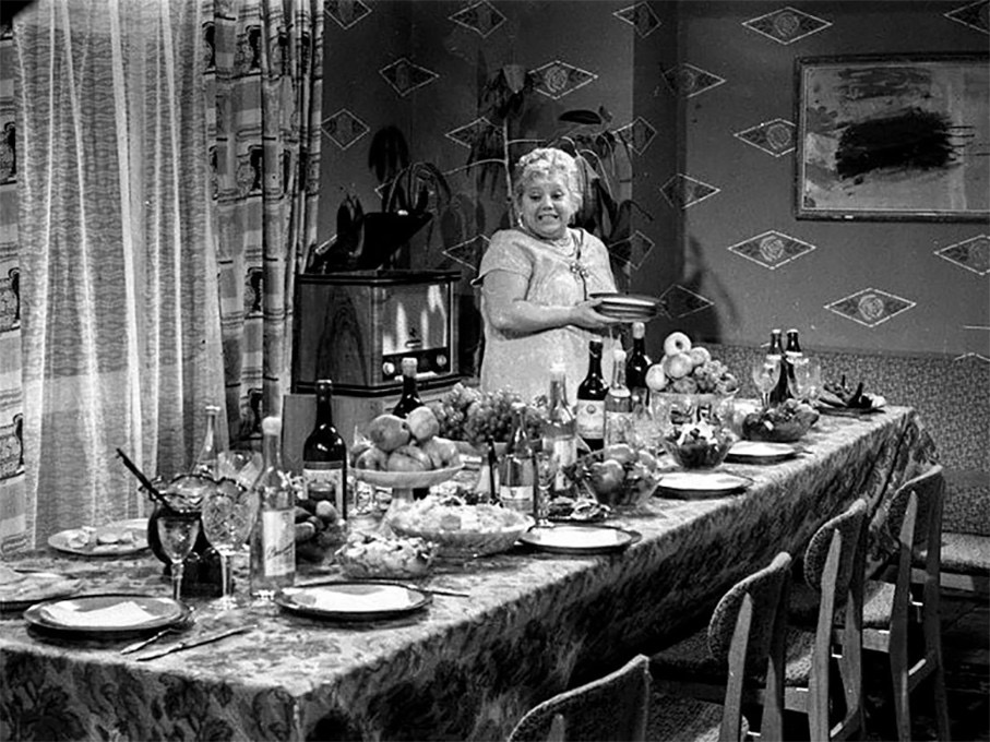…У Дыдыкиных нам все очень обрадовались. За столом сидела целая куча народу. В комнате вкусно пахло колбасой.