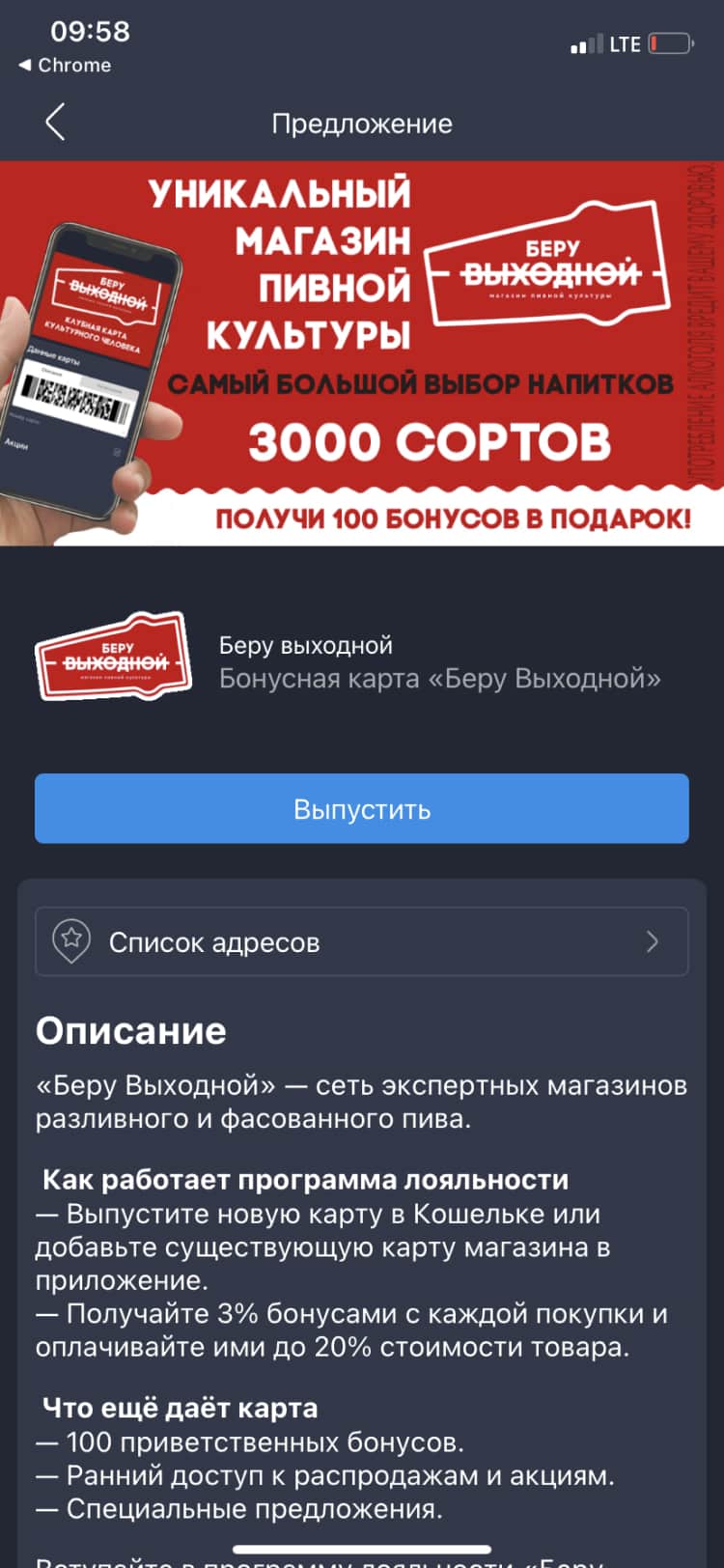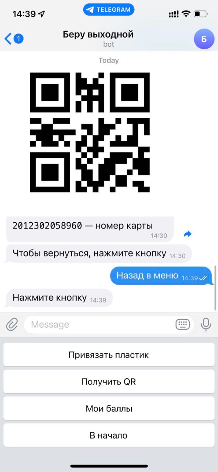 Беру выходной карта