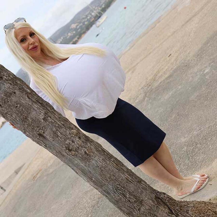 Beshine In Bed With Massively Enhanced Tits Babe