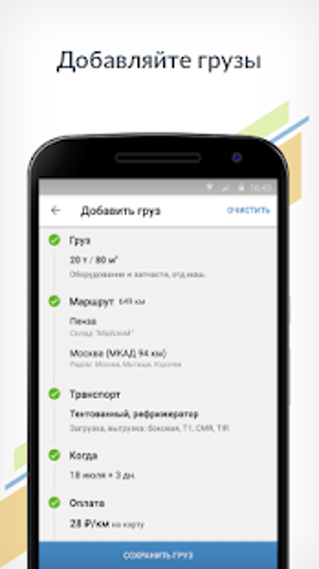 Бесплатное приложение грузоперевозки