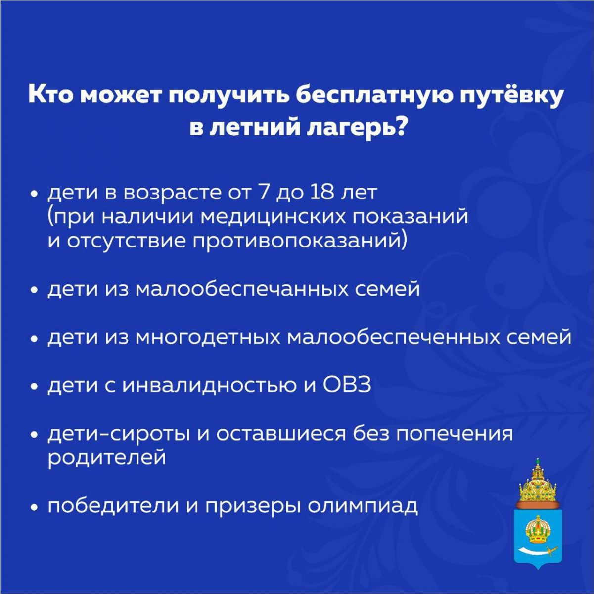 Бесплатные путевки в смену