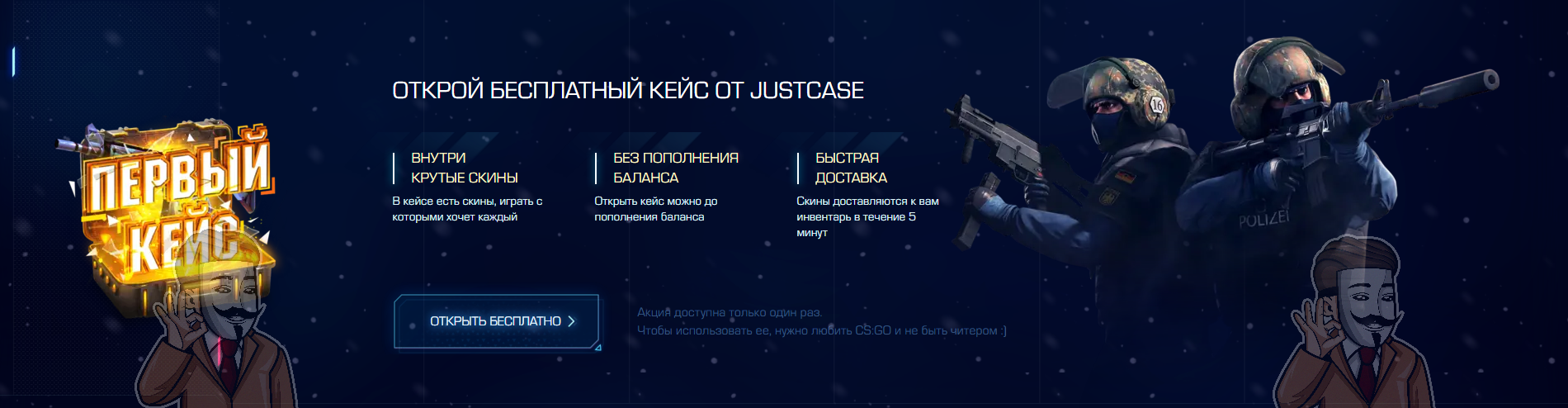 1) Заходим на JustCase и видим бесплатный кейс: