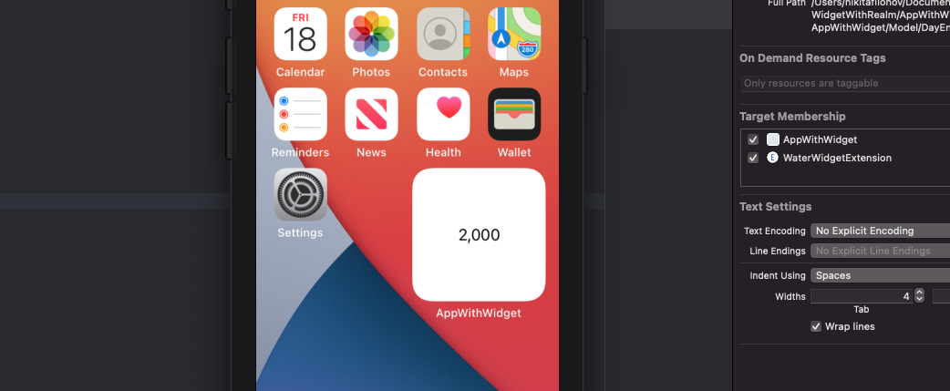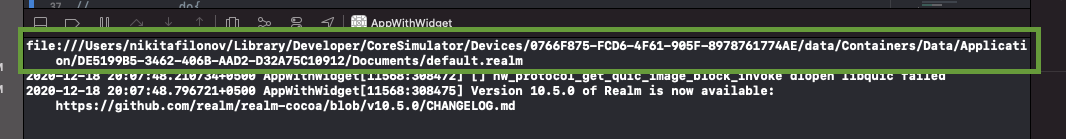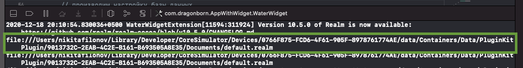 И когда мы запускаем приложение - Realm создает файл базы данных внутри контейнера приложения. Затем, когда мы обращаемся к БД из виджета, Realm создает еще один файл внутри контейнера виджета.
